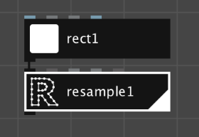 한 변이 100인 정사각형에 resample노드를 적용시키되 length 안에 50의 숫자를 넣어보자.