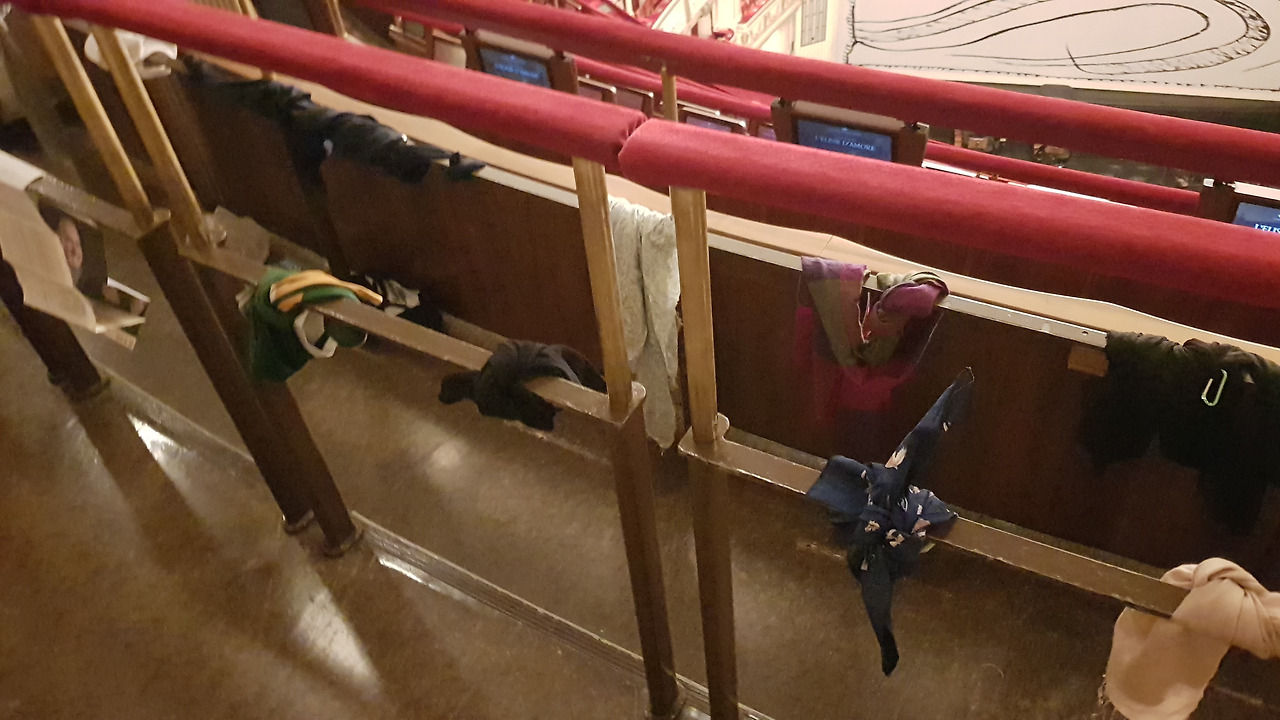 뭐, 그런 생각과는 별개로 오페라 관람은 정말 재미있는 일입니다. 오페라 하우스의 입석은 좌석 가장 외곽에 서서 볼 수 있도록 구성되어 있습니다. 좌석에 스카프 등을 매어 두어 자신의 자리를 표시하는 게 재미있습니다. 오페라의 무대 연출도, 주연들의 열창도, 그리고 무대 앞에서 이루어지는 오케스트라의 실시간 공연도 신기한 것 투성입니다. 누구 하나 실수하면 흐름이 깨질 수 있는 공연이 이렇게 완성도가 높을 수 있을까요?