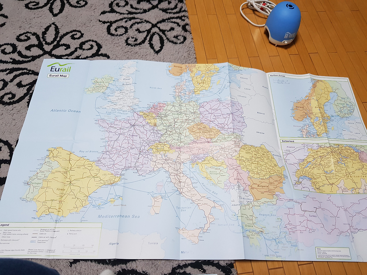 유레일 패스를 구매하니 유레일 맵이 같이 날아왔습니다. 지도를 펴놓고 동선을 짜는 재미가 쏠쏠합니다.