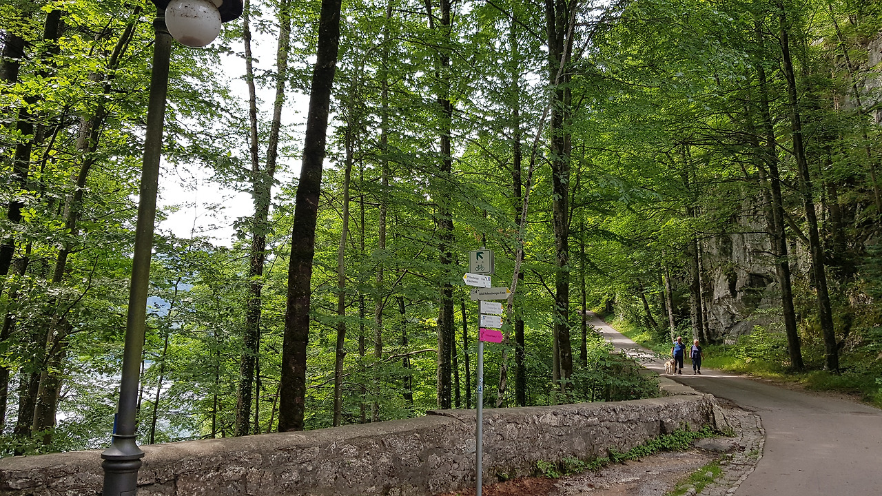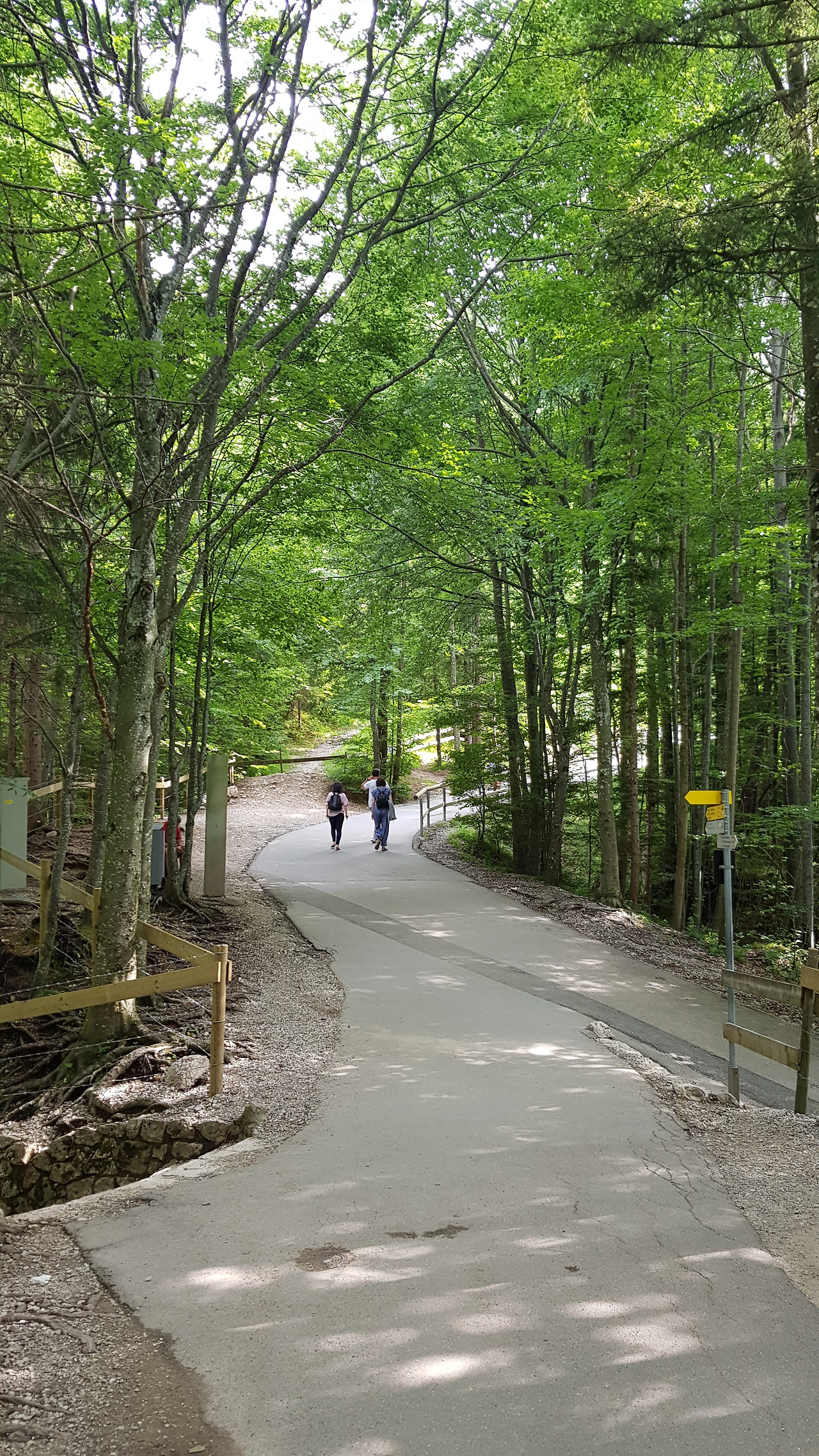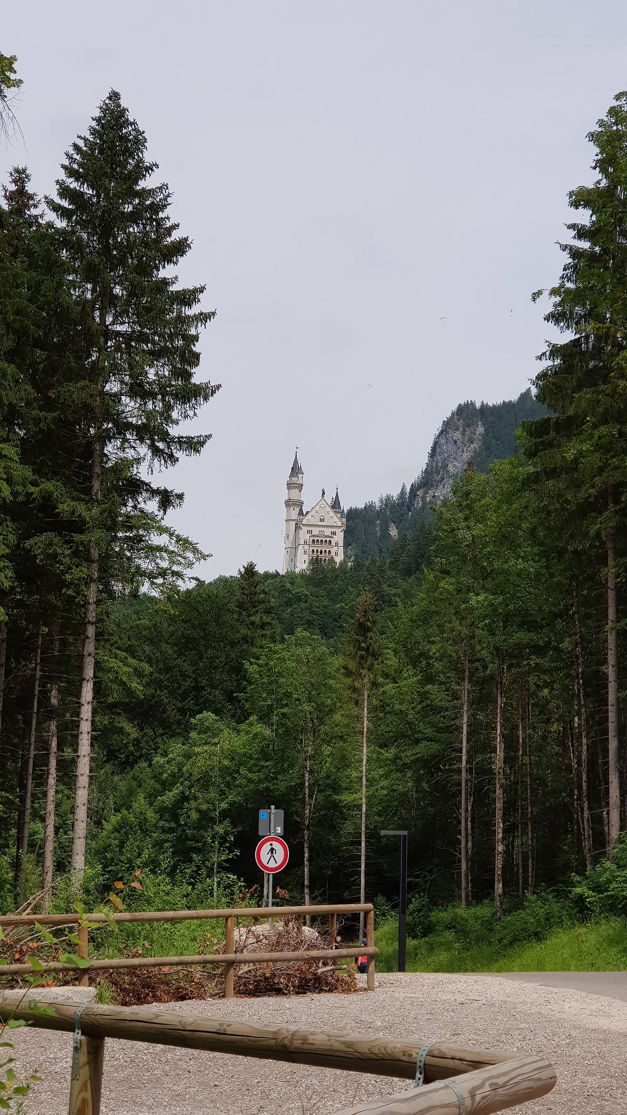 노이슈반슈타인 성에 올라가는 방법은 크게 세 가지가 있습니다. 하나는 40분가량 산 길을 올라가는 것이고, 하나는 마차를 타고 올라가는 것이고, 하나는 버스를 타고 올라간 다음 걸어가는 겁니다. 시간에 여유가 있어서 걸어 올라가기로 하는데 깊은 산길을 등산하며 산림욕을 하는 느낌입니다. 등산길 좌우로 마차가 다니는 길이 있는데 말들이 터벅터벅 걸어가는 게 꽤 웃깁니다. 다만, 말들이 다니면서 똥을 하도 많이 싸다 보니까 올라가는 길바닥은 그야말로 말똥 천지입니다. 가능한 안 밟기 위해서 피해 다닌다고 해도 말똥 냄새가 유쾌한 산행길을 다 망치는 느낌입니다. 낭만이고 여유고 서둘러 올라가는 데 길이 꽤 가파른지라 고생을 합니다. 특히 요즘 너무 걸어 다니며 발바닥과 족저근막에 계속 피로가 누적된지라 상태가 말이 아닙니다. 이렇게 고생한 보람이 있기를 부디 바랍니다.