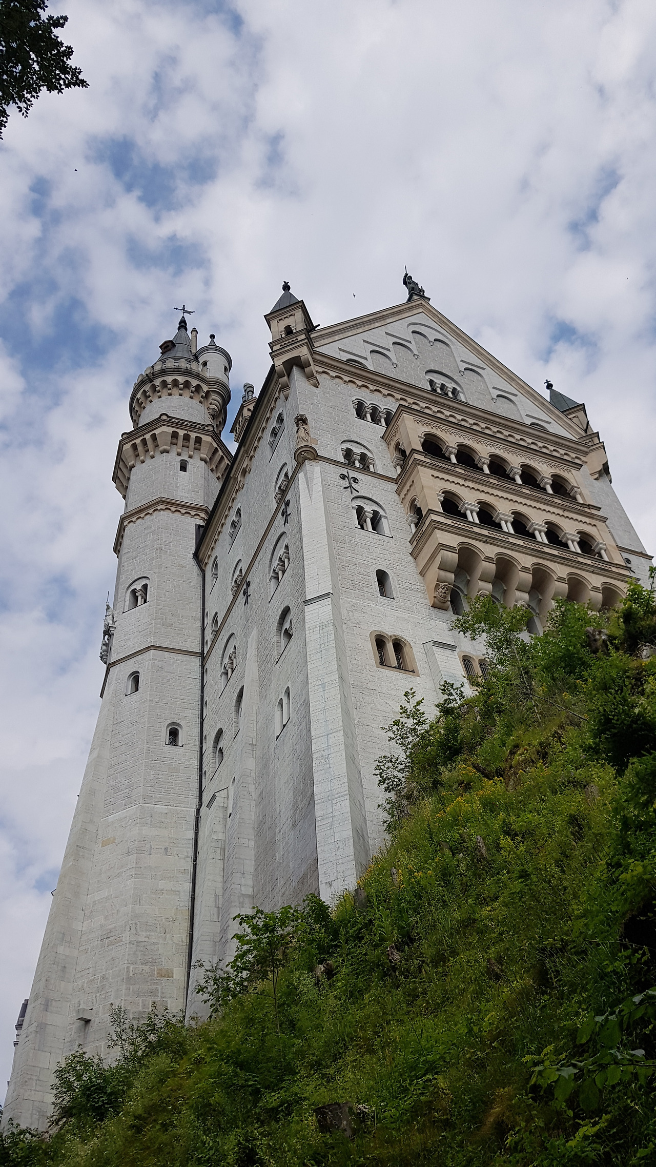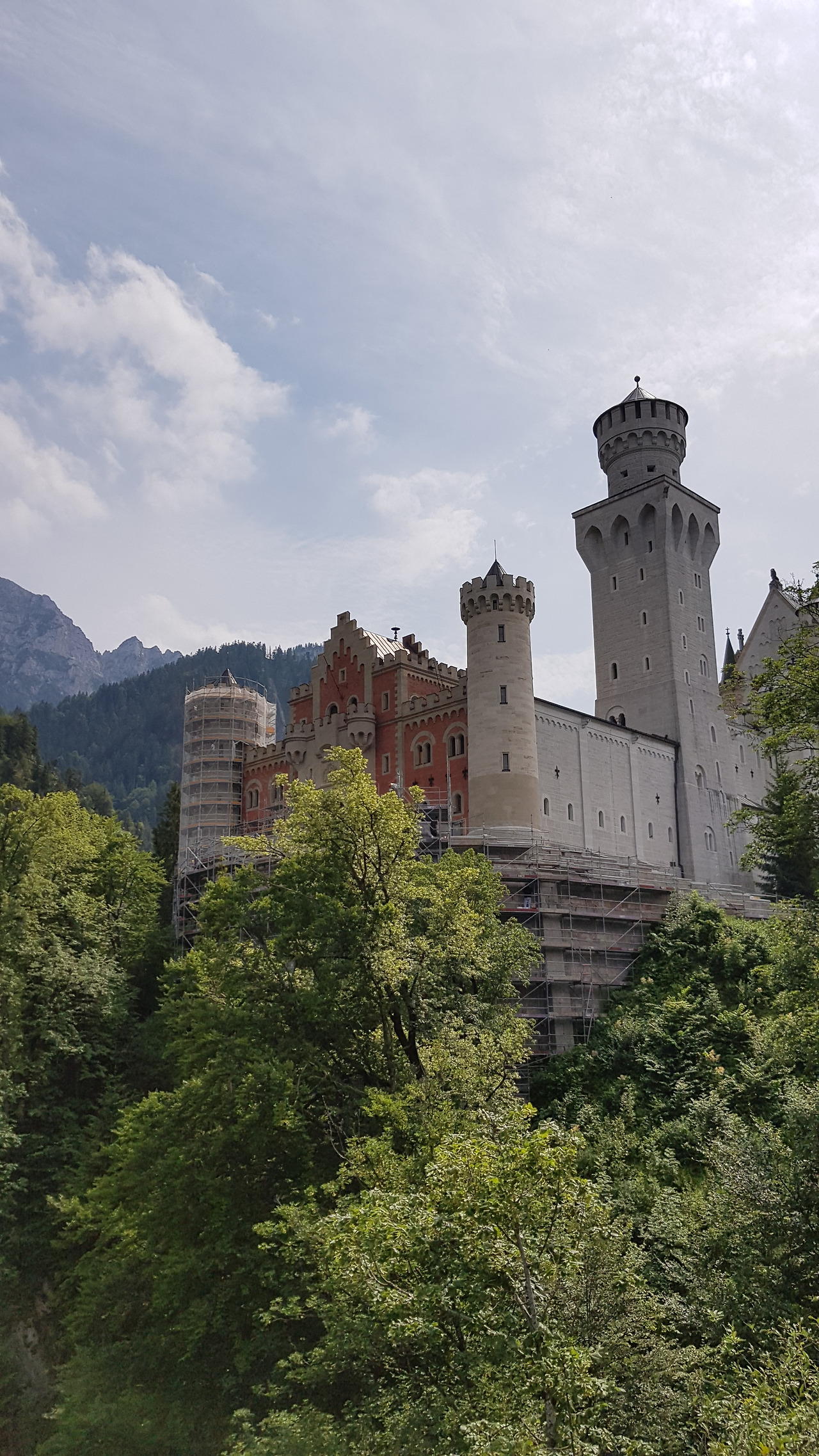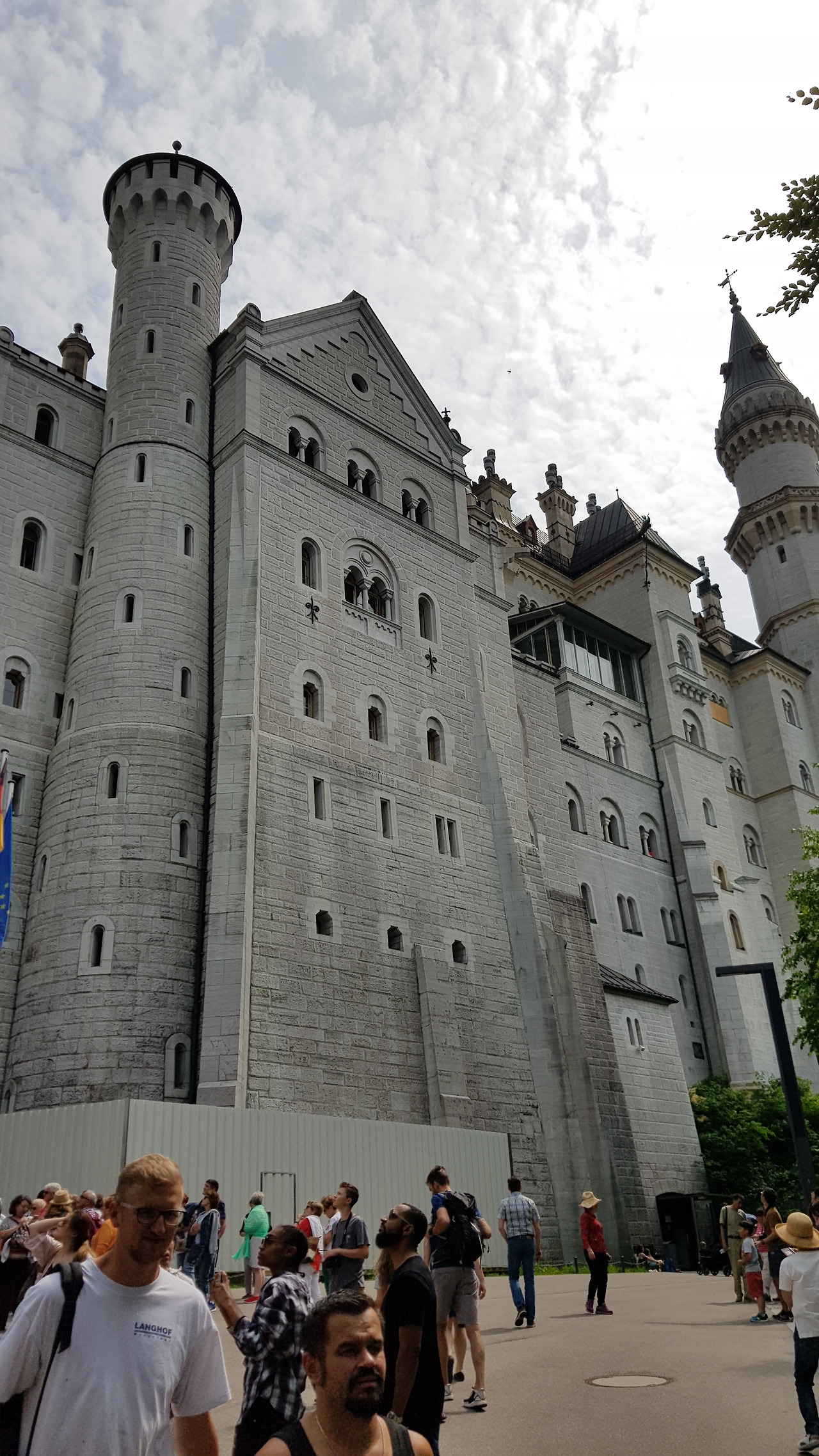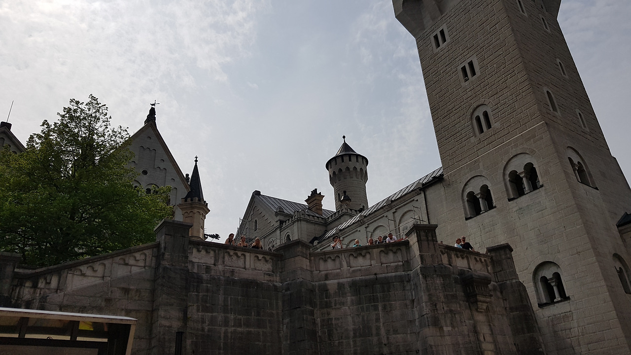 멀리서 볼 때에는 잘 몰랐는데 가까이서 보니까 노이슈반슈타인 성은 엄청 거대한 성입니다. 가까이서 카메라에 담으려고 하니까 성의 모습을 제대로 담을 수가 없습니다. 아까 호엔슈방가우 성과는 비교도 안 될 정도로 크고 구경 온 사람도 많고 한 번에 이동하는 투어 그룹의 규모도 다른 듯합니다. 성에서 내려다보는 마을, 호수, 절벽이 어우러지는 풍경은 생각했던 것 보다도 더 비현실적으로 느껴집니다. 대자연 속에 사람의 흔적이 자연스럽게 녹아들어 간 느낌이랄까요?