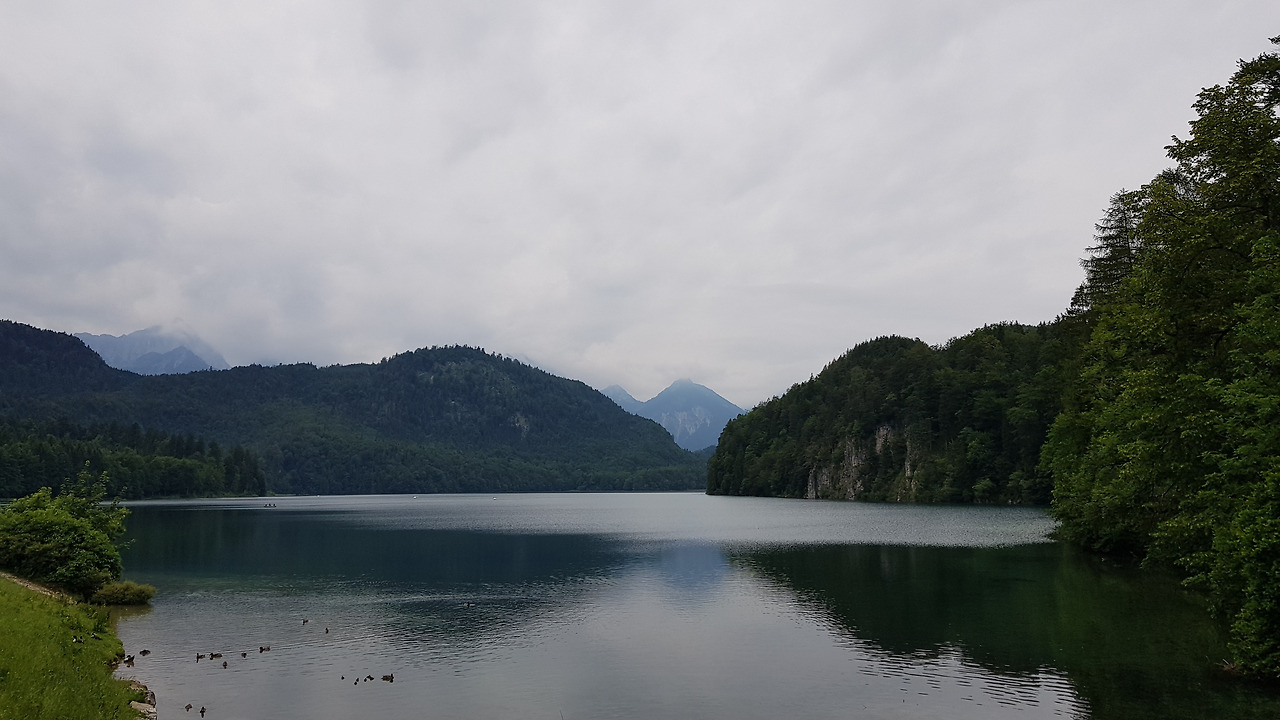 퓌센 역에 도착하니 정말 사람이 한 바구니입니다. 역에서 티켓 판매소까지 가는 버스에 대기 줄이 엄청 깁니다. 버스 한 대를 다 채우고도 줄이 꽤 남아 다음 버스를 기다립니다. 버스를 타고 가는 길에 창밖의 풍경을 보니 완전히 첩첩산중입니다. 사방을 둘러싸고 있는 절벽과 알프 호수, 그리고 산중에 숨어 있는 듯이 간신히 보이는 성들을 보니 완전히 도시 문명에서 벗어나 판타지 세상 속으로 들어온 기분입니다.