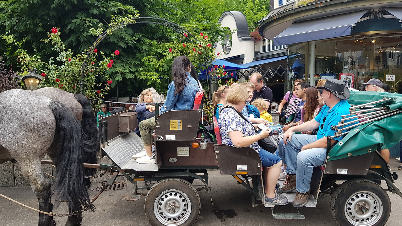 마차가 지나갈 때마다 한 쪽으로 길을 비켜주어야 합니다. 말이 푸드득푸드득 변을 놓는 모습에 충격이 가시질 않습니다