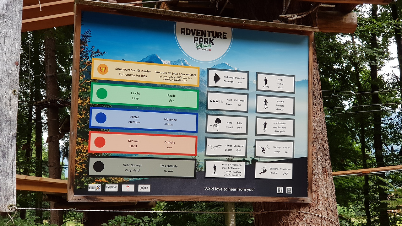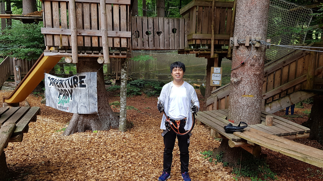 비행이 끝나가는 순간이 너무나 아쉽기만 합니다패러글라이딩을 마치고 까르보나라로 간단하게 점심을 해치운 뒤 다음 액티비티를 향해 달려갑니다. 처음에는 캐녀닝을 해볼까도 생각했지만 조금 비싼 가격에 관두고, 대신 가성비가 좋은 로프 액티비티를 하기로 합니다. 산길을 따라 인터라켄 내부로 들어가면 높이 솟은 나무에 장해물과 로프를 엮어 만든 공원이 보입니다. 미리 예약을 해두어서인지 "Oh you are Mr. Park"이라면서 제가 아는 척을 하기도 전에 반갑게 직원이 맞이해 줍니다. 체크인을 하고 안전장치를 착용한 후, 안전 교육과 안전장치 이용 방법에 대해서 듣습니다. 별도의 안전 요원을 동반하지 코스를 따라 직접 이동하는 만큼, 안전 장비를 로프에 제대로 걸지 않으면 이동할 수 없는 구조로 되어있습니다. 두 개의 안전 고리와 짚라인 기구를 이용하는 방법까지 확실하게 튜토리얼로 숙지한 후 본격적인 로프 타기를 시작하기로 합니다.
