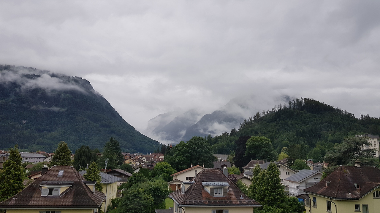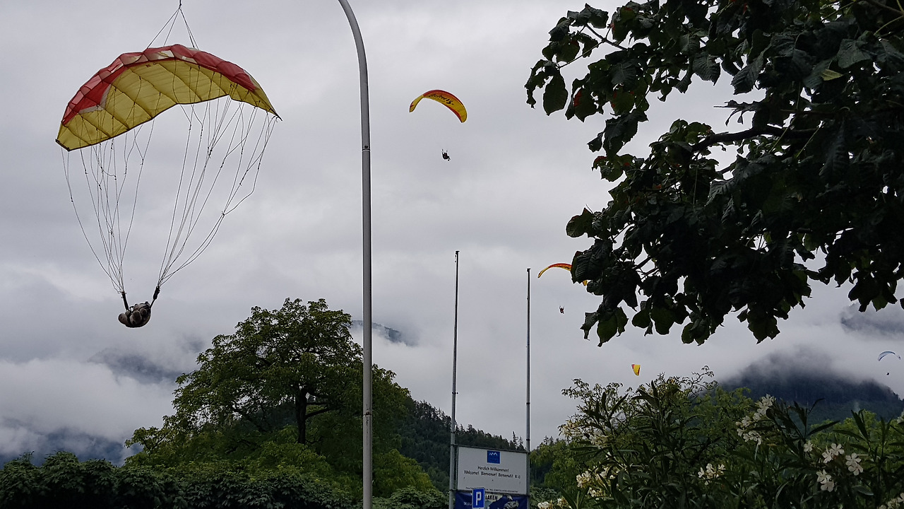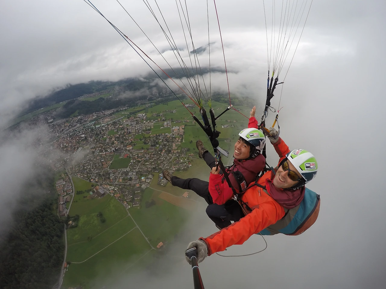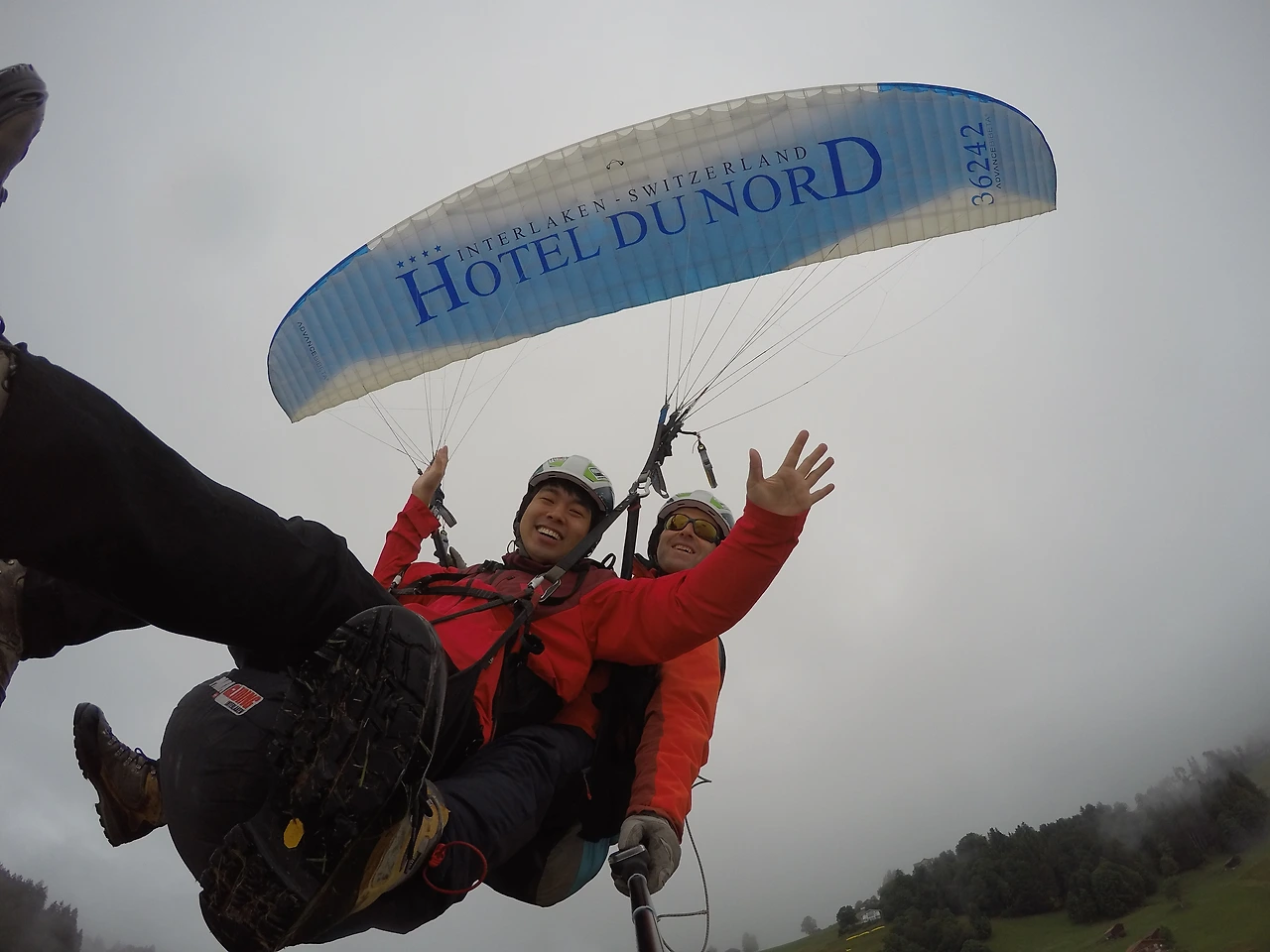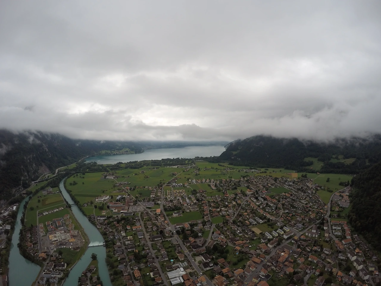 장비를 빌리고 산으로 올라가 봅시다차를 타고 산을 한참을 올라가니 금세 낙하 포인트에 도착한 모양입니다. 같이 뛸 파일럿 분과 인사를 나누고 장비를 갖춥니다. 'TOM'이란 이름의 파일럿 분과 함께 낙하 장비를 끌고 이동하면서 제가 하던 일, 온 장소, 뛰는 것에 대한 소감 등 다양한 이야기를 나눕니다. 비탈길을 따라 걸으며 주위 풍경을 둘러보니 온통 구름 투성이라 아무것도 보이지 않습니다. 다행히 TOM이 'I wish 구름 goes out'이라며 익살스럽게 이야기합니다. (앞으로 인용구에 한글로 적힌 부분은 전부 한국어로 이야기한 겁니다.) 산비탈에 방목한 소가 보여서 신기해하며 구경하는데 소똥을 조심하라고 너스레를 떱니다. 낙하산까지 바닥에 펼쳐놓고 뛸 준비를 마치고는 제게 마음에 준비가 됐냐고 물어보시더니, '달려달려달려달려'를 외치며 전력으로 뛰어갑니다. 달리다 보니 점점 지면이 꺼지는 것 같아 그대로 추락하는가 싶더니 금세 몸이 붕 뜨는 게 하늘을 나는 걸 실감합니다. 생각보다 빠른 속도로 앞으로 나아가며 구름 사이를 뚫고 지나가는데, 물방울 알갱이 같은 것들이 얼굴을 때립니다. 코앞도 가늠할 수 없는 구름 속에서 계속 헤매나 싶었지만, 잠시 뒤 구름 사이로 마을과 호수가 드러나기 시작합니다. 그동안 많은 전경들을 봐왔지만 하늘을 날면서 보는 마을의 풍경은 아름답다는 말로 표현하기에 부족합니다. 서쪽으로 툰 호, 동쪽으로 브리엔츠 호 두 개의 호수를 끼고 푸른 산에 어우러지며 길게 이어지는 주홍색 지붕들의 행렬은, 평생 잊기 어려울 풍경입니다. 파일럿 분과 함께 계속해서 사진을 찍으며 감상을 이야기하는데 짧은 영어와 아름다운 풍경에 말문이 막혀 very very good만 연발합니다. 파일럿 분이 'Do you want 빙글빙글?'이라고 물으시길래 '많이 빙글빙글'이라고 답해드렸더니 낙하산을 좌우로 흔들면서 롤러코스터처럼 내려오는 게 너무 재밌기만 합니다. 그렇게 15분의 비행을 마치고 땅에 착륙했는데 어지러워서 제대로 서지도 못합니다. 너무 감동해서 주저앉은 거냐며 환상적이었냐고 물어보는 파일럿 분의 익살에 저는 감사하다는 말을 연발하며 인사를 드립니다. 하이파이브를 연발하며 쌍 따봉을 치켜세우는데 다시 생각해봐도 대단한 비행이었습니다.
