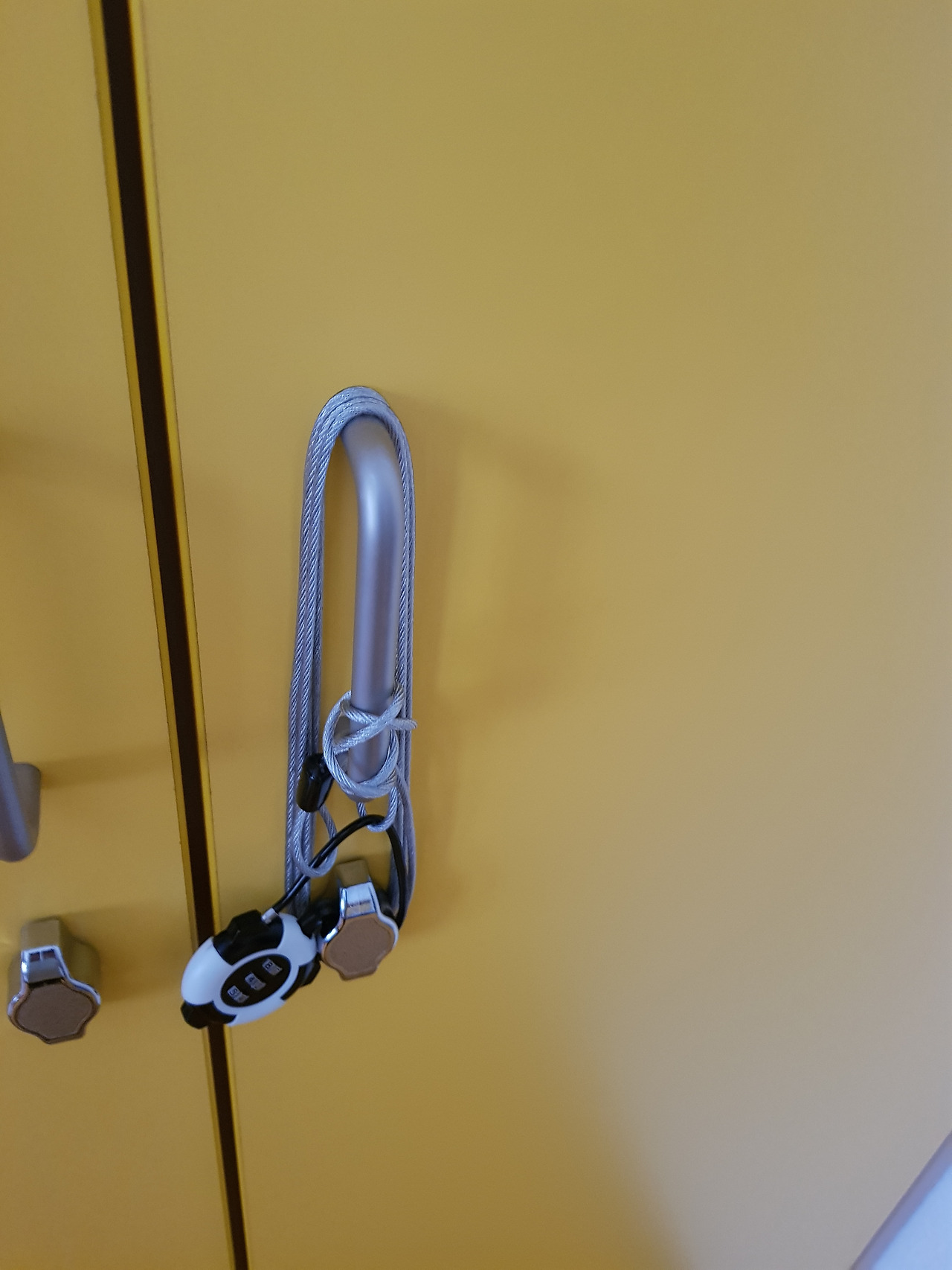 도무지 잠기지 않아서 와이어로 칭칭감아버린 사물함. 저런다고 락이 완성되는건 아니지만, 보는 사람으로 하여금 완전히 잠겨있다는 심리적 자물쇠로 작용하길 기대합니다.