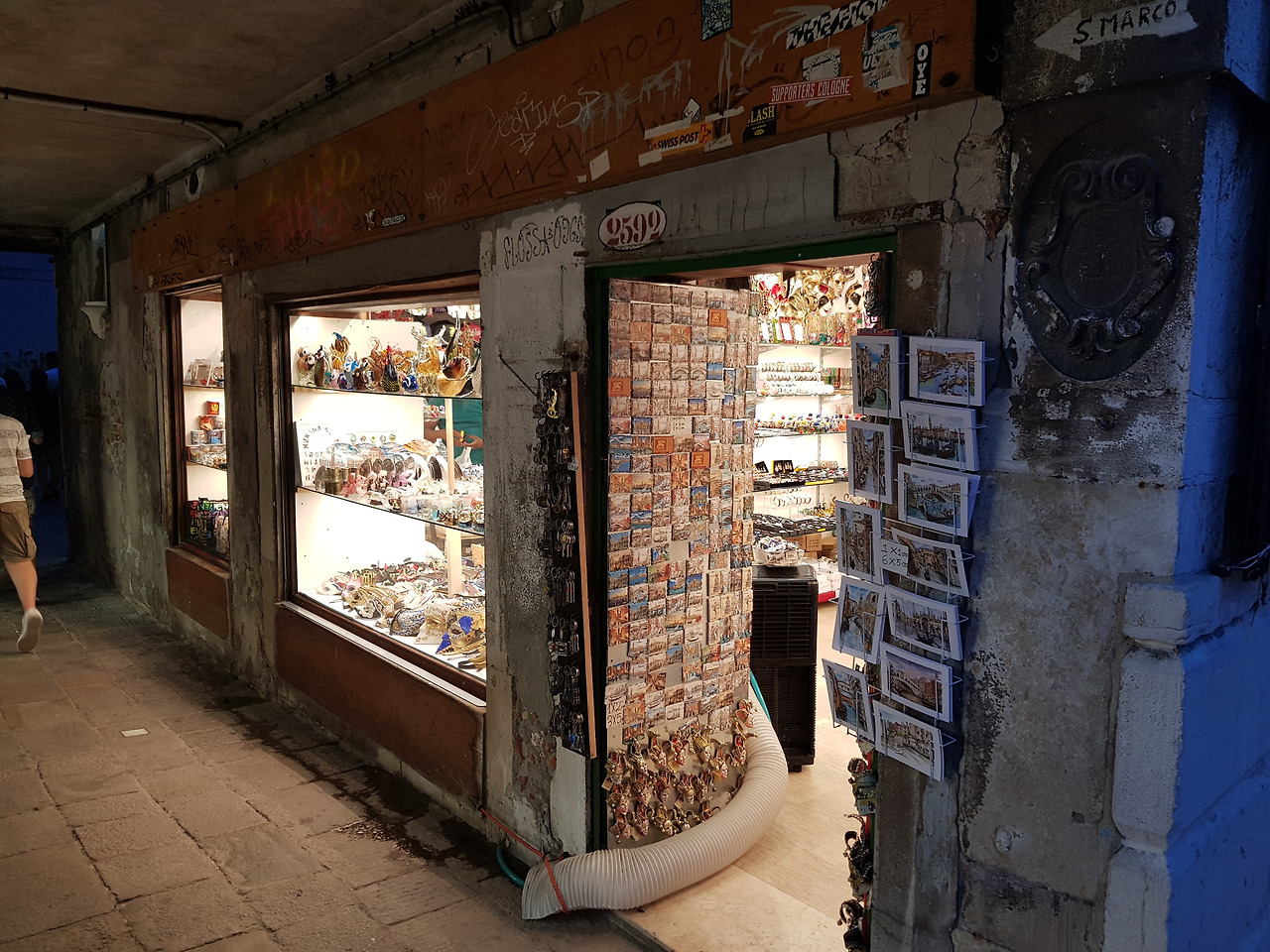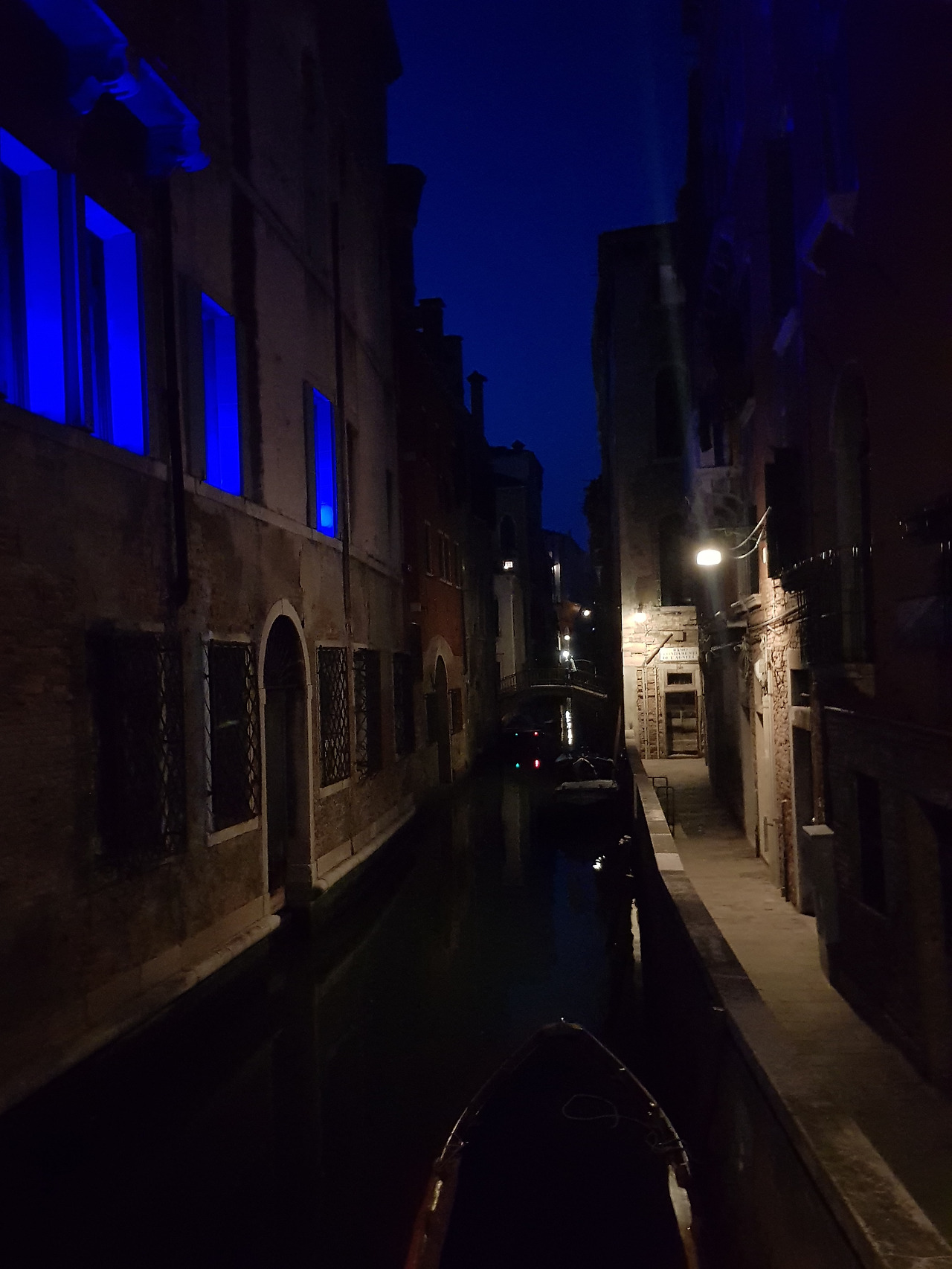 정신을 차리고 달리다 보니 다시 상점가가 보입니다. 안도의 한숨을 내쉬며 다시 길을 갑시다이제 완연한 어둠이 깔린 베네치아의 밤거리는 완전히 다른 세상입니다. 기념품 가게는 화려한 조명에 아련하게 물들고, 리알토 다리는 어둠 속에서 낭만을 찾는 사람들로 한가득합니다. 화려한 조명 속에서 바쁘게 움직이는 인파에서 멀어지고 다시 골목길로 향하는 저는 순식간에 외딴곳에 홀로 남은 이방인으로 돌아갑니다. 이제 완전히 검게 물든 수면 위로, 배들이 지나가면서 만들어진 파형에 반사된 조명 불들이, 흔들리는 모습을 혼자 넋 놓고 바라보는 한밤의 베네치아입니다.