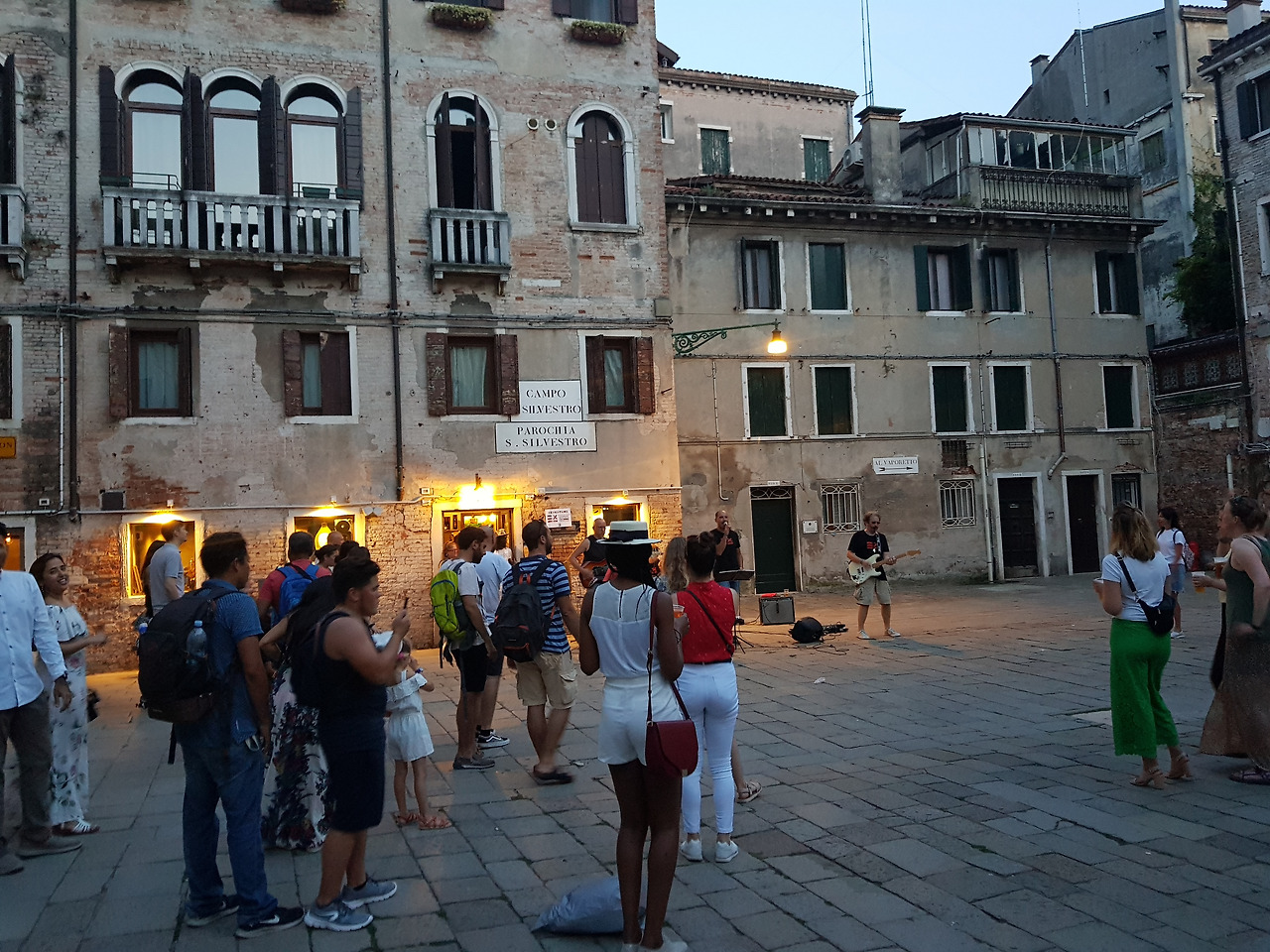 하루가 저물어 갑니다대부분의 통행길이 골목길이라 어둠에 잠기면 큰일 날까 걱정도 듭니다만 다행히 가로등 불도 밝고 다니는 사람도 많아 안심이 됩니다. 오히려 곳곳에서 노래를 부르고 댄스를 추고, 락을 연주하는 밴드와 열광하는 사람들까지 시끌벅적한 베네치아의 밤이 시작됩니다.
