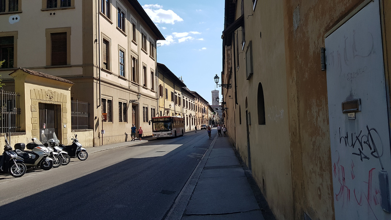 2시간 정도를 달려 오후 2시쯤에 도착한 피렌체는완전히 찜통입니다. 로마보다 위도가 높으니 더위가 조금 누그러들 줄 알았는데 어떻게 된 일인지 로마보다 더 덥습니다. 스마트폰은 37도를 가리키고 저는 무엇도 하고 싶지 않습니다. 역에서 숙소까지 걸어가는 20분 거리의 길은, 너무 비좁고 곳곳이 부서져서 도무지 캐리어를 끌고 갈 만한 길이 아닙니다. 뜨거운 햇살에 녹초가 된 몸으로 이리저리 사람들에게 치이며 겨우 호스텔에 도착합니다. 호스텔의 에어컨만이 이 더위에 유일한 안식처입니다.