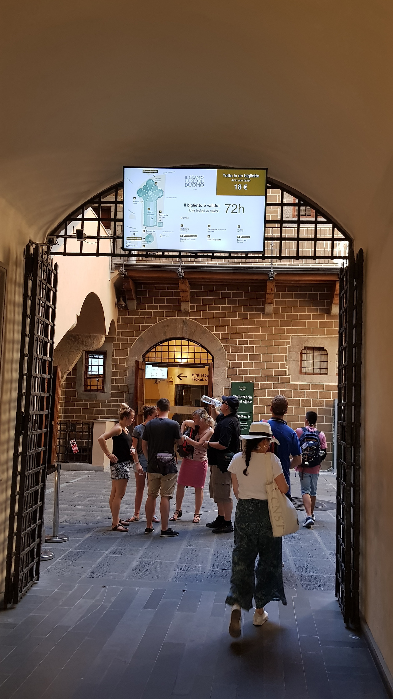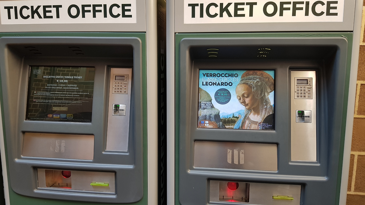 잡친 기분에 저는 더 이상 구경 다닐 생각이 사라져 버립니다. 그냥 다음 날의 구경을 위해 두오모 통합권이나 구매하기로 합니다. 표 예매 장소도 워낙에 구석진 곳에 숨겨져 있어서 한참을 찾아다닙니다. 무슨 시장의 화장실 통로 같은 곳에 표 예매를 위한 통합권 자동판매기가 있는데, 생각과는 달리 줄을 서서 기다리는 사람이 하나도 없습니다. 다만 줄이 없는 것과는 별개로 이미 예약이 가득 차서, 두오모 관광의 꽃인 쿠폴라 등반은 이틀 뒤로 예약이 잡힙니다.