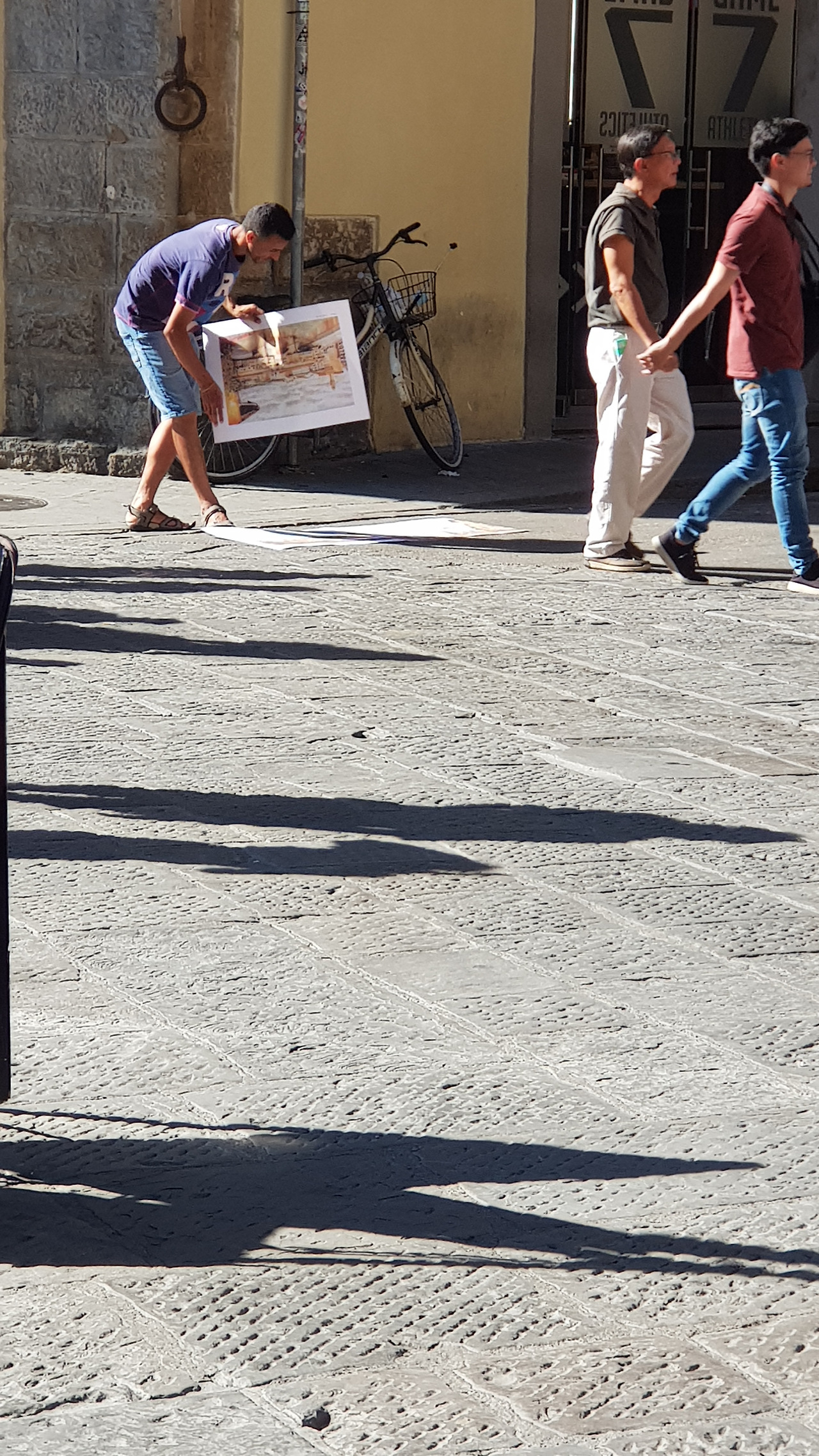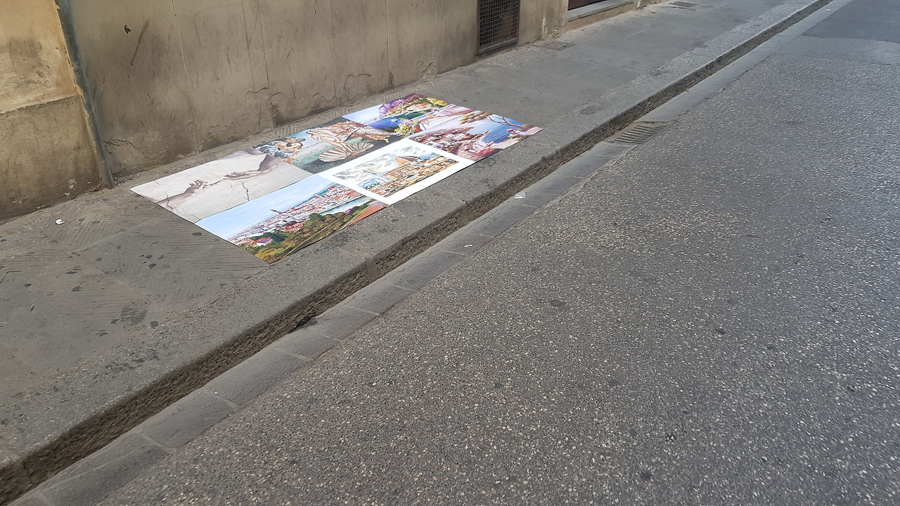 저는 놀라서 가라앉지 않는 가슴을 가까스로 진정시키며 방금까지 무슨 일이 있었는지 다시 돌아봅니다. 어떻게 사람이 이렇게 많은 길거리에서 손목을 잡히고 끌려가 돈을 뜯길 수 있는지 머리가 도무질 받아들이지 않습니다. 그나마 어떻게든 연기를 해서 50유로를 뜯기지 않고 잔돈만 뜯긴 것이 다행인지 모릅니다. 무슨 이런 생양아치 깡패들이 있나, 화가 나는 마음에 조금 멀리서 지켜보기로 합니다. 그 일행들은 이곳저곳에서 그림들을 꺼내 바닥에 깔아놓고 다른 사람들이 밟자 돈을 요구하는 짓을 몇 번이고 반복하고 있습니다. 가뜩이나 좁은 통로를 그림으로 틀어막고 밟기를 유도하며 사기를 치고 있는데 경찰은 도대체 뭘 하고 있는 건지 알 수가 없습니다. 손목을 잡혀 끌려갔던 불쾌하고 무서웠던 감각이 좀처럼 잊히지가 않습니다.