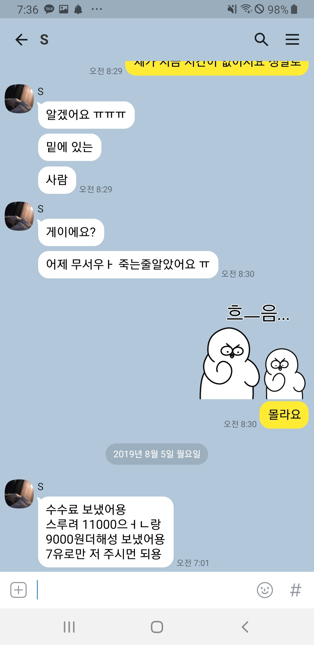 - 아침에 눈을 뜨니까 상기의 카톡이 와 있음.
