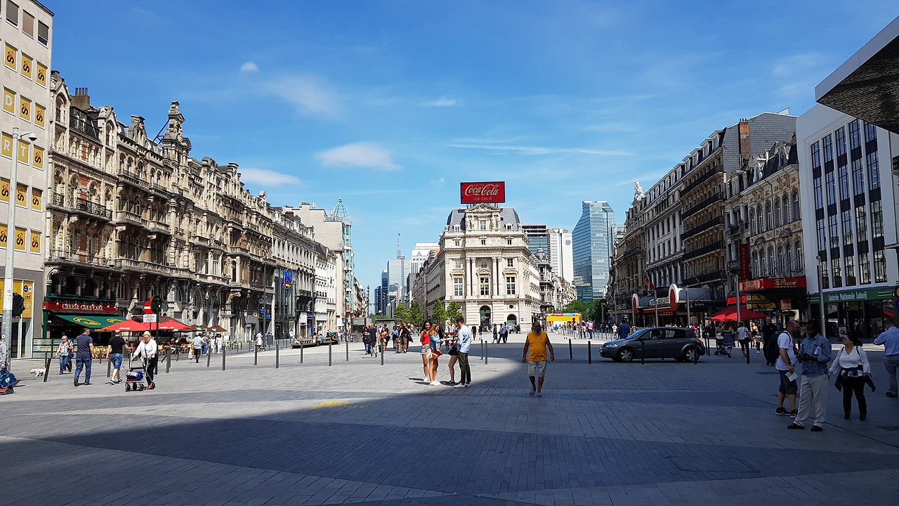 널게 트인 공원과 멀티플렉스가 들어선 브뤼셀 중부