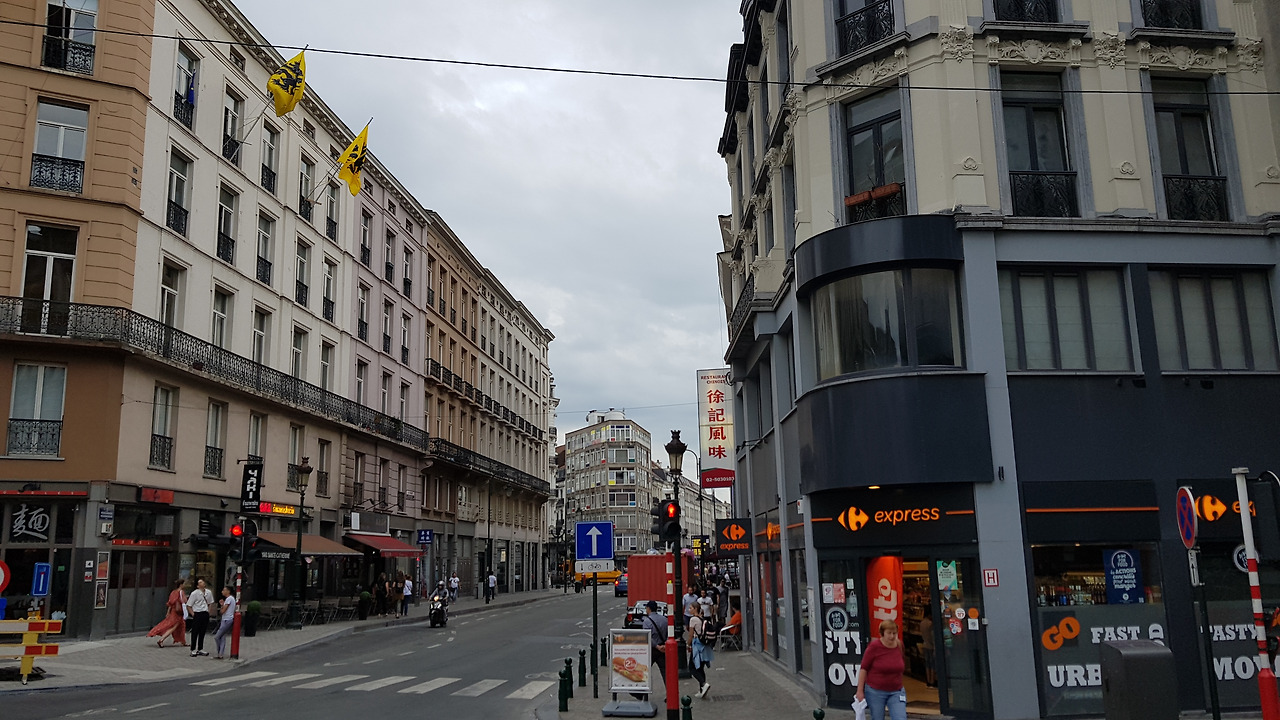 파리 북역에서 기차를 타고 한 시간 반 정도 이동하니 국경을 넘어 벨기에 브뤼셀 남역에 도착합니다. 원래라면 브뤼셀 중앙역으로 가야 하는데 표를 잘못 예매하는 바람에 남역에서 내리고 맙니다. 다행히 그렇게 긴 거리는 아나라서 가볍게 걸어서 중앙역 쪽으로 가보기로 합니다. 겸사겸사 브뤼셀의 정경도 느껴보고요.