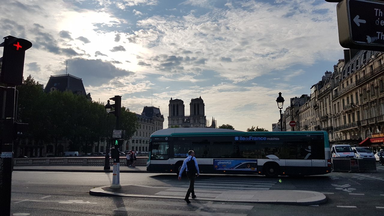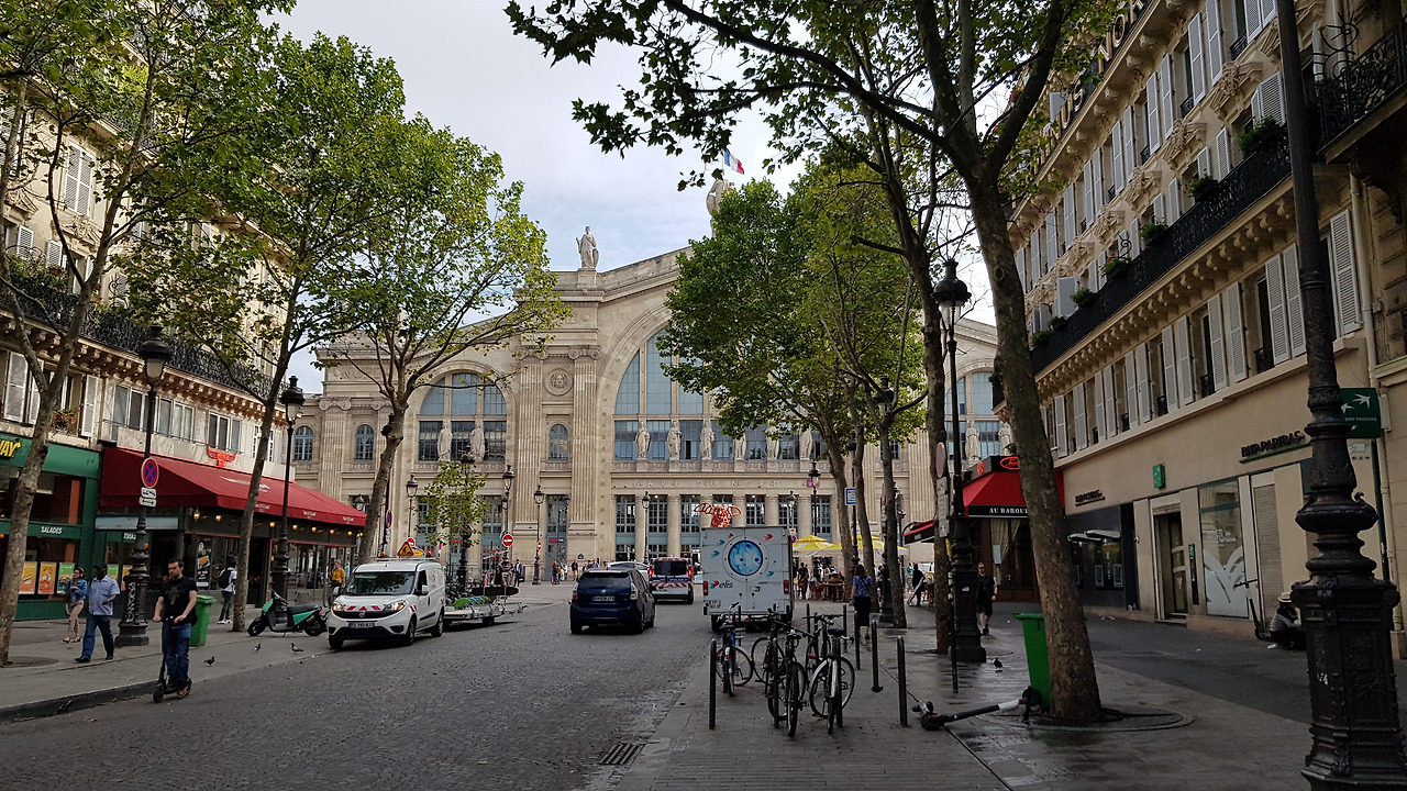 파리 역으로 가는 길은 선선해서 걷기에 좋습니다. 중간중간에 신호가 많지만, 인도가 전체적으로 포장이 잘 돼있고 정비가 잘 돼있어서 캐리어를 끌고 가기에 불편함이 없습니다. 아직 8월 초인데도, 높다란 가로수에서 떨어진 낙엽 잎들 때문인지 길거리가 조금 황량하게 느껴집니다. 이른 아침이라 사람도 적고 선선한 날씨가 황량함에 한몫 더하는 듯합니다.