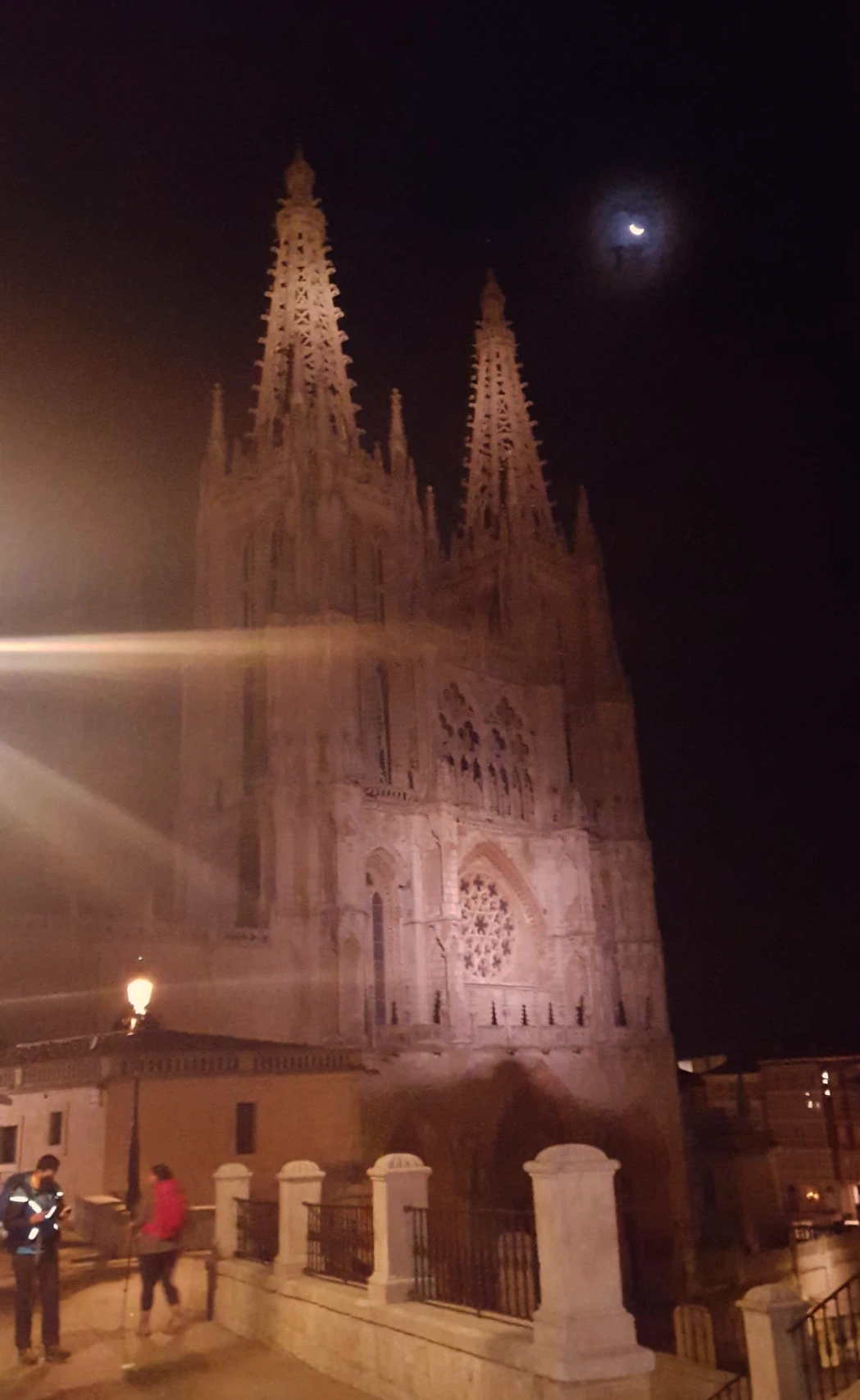 8유로를 주고 묵었던 숙소에서 개인 침대를 쓰고 저녁도 거하게 차려먹은 덕분에 몸과 마음이 모두 느긋해졌다. 저녁 10시가 조금 못되어 잠이 들었는데 늦잠을 자버렸다. 8시 30분이 넘어서 길을 다시 떠났다. 가는 길에 브라질에서 온 라파엘 그리고 포르투갈에서 온 델모를 만나게 되었다. 델모는 이전에 나헤라에서 함께 잠깐 걸었는데 워낙 조용하고 말이 없어서 종교적인 이유가 있나, 유심히 지켜본 적이 있었다. 이들과 함께 걸으면 항상 일찍 일어난다. 이틀 연속으로 새벽 5시에 일어나 걸었다. 어제는 와인에 취해 '너희들 갈 때 꼭 깨워줘!' 하고 쓰러지듯 잠에 들었다. 평소 같으면 자고 있을 시간에 일어나 걸으니 색다르다. 채 지지 못한 달빛 아래 성당이 아름답게 빛난다.