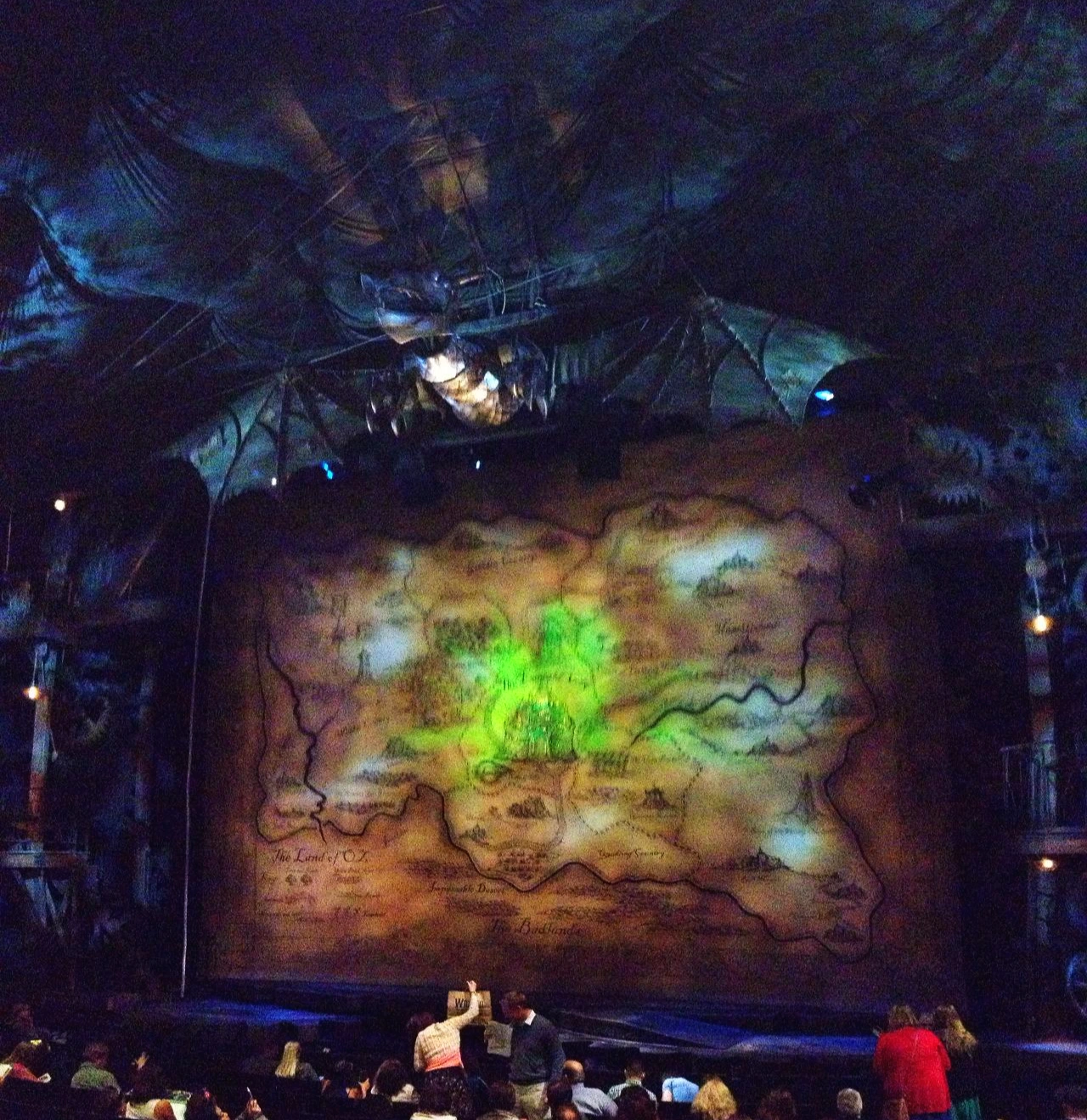 대극장 연기를 보면 가끔 부담스러울 때가 있는데, 이는 멀리 있는 관객에게도 말하고자 하는 것이 정확히 전달되어야 하기 때문이다. 그런데 그 연기를 코앞에서 보니 그 '과장'은 배가 되었다. 계획된 침묵이 아닌 이상 배우들은 단 한시도 쉬지 않았고 끊임없이 표현했다. 눈으로도 말하고 손짓으로도 말하고 어깨로도 말했다. 다만 가까이 있기 때문에 문득 ‘이건 계획된 공연이야’라고 느낀 순간이 종종 찾아왔다. 배우들의 분장이 고스란히 눈에 보인다거나 (염소 그레 먼디 교수의 실리콘 가면의 경계선이나 배우들의 등 뒤로 연결된 살색 무선 마이크라던지 원숭이들의 가면 등) 노래를 하다가 침이 튀기는 것 까지 보였다. 새롭게 알게 된 사실은 나는 엘파바의 초록색 피부가 전부 피부에 물감을 칠해놓은 것일 줄 알았는데 아니었다. 얼굴을 제외한 손과 팔에 얇은 초록색 실리콘 장갑이 끼워져 있었다. 정 중앙에서 본 것이 아니기 때문에 무대가 한쪽으로 치우쳐져 한쪽을 자세히 볼 수 있었다. 스포트라이트를 조작하거나 소품을 옮기는 스태프를 보는가 하면 다음 차례를 기다리는 배우들도 볼 수 있었다.