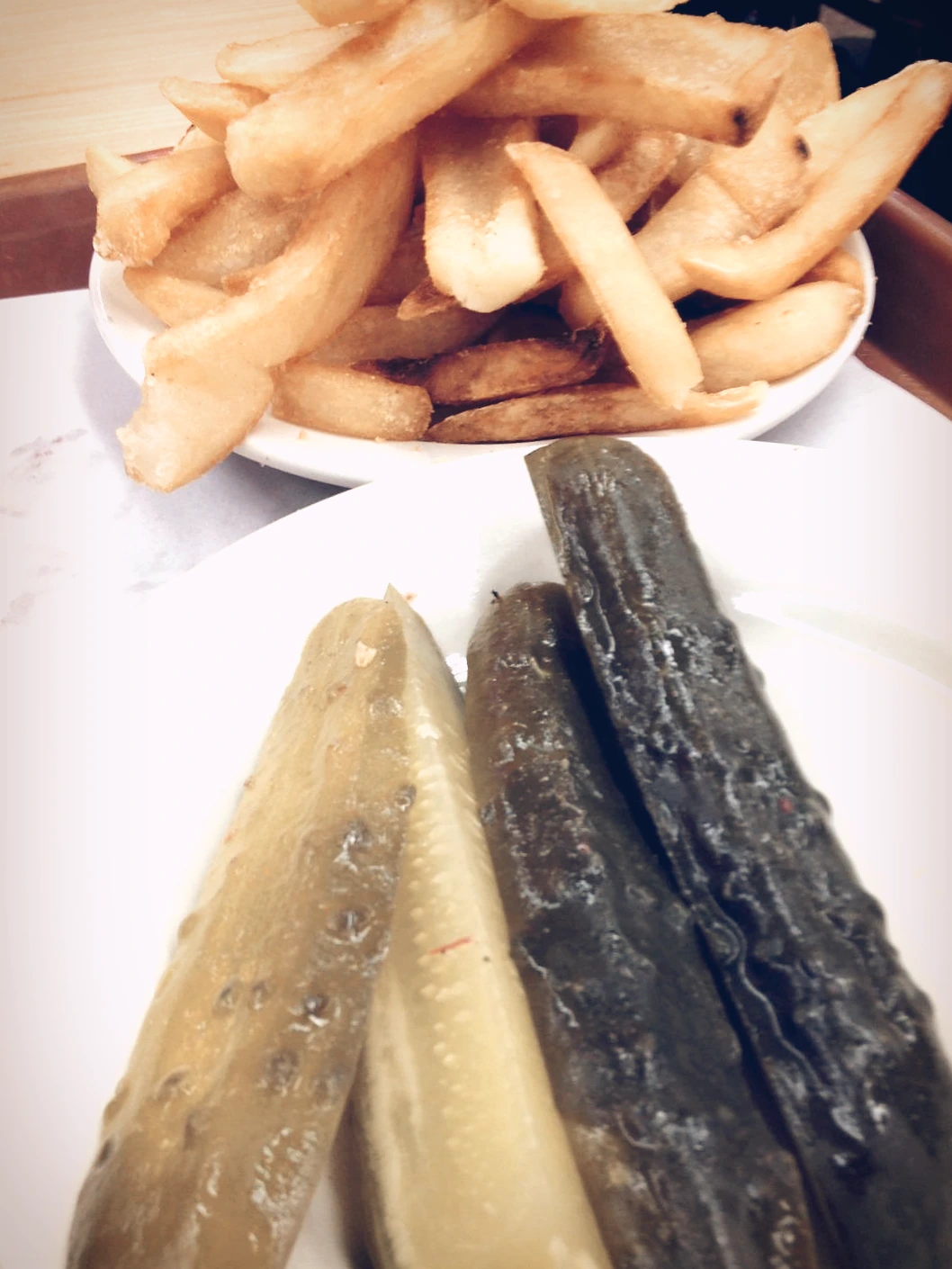 기다리는 동안 들어보지 못한 메뉴들을 검색해보았다. corned 소금에 절인, rouburn, pastrami…… 이것저것 검색을 해보다가 pastrami를 먹기로 한다. 샌드위치를 만드는 아저씨는 손놀림이 매우 빨랐다. 내 앞사람을 끝으로 고기와 빵이 떨어져 커다란 고깃덩이와 빵을 가져와 새로 잘랐다. 유후, 기분이 좋아졌다. 피클은 1인당 하나씩 주고 감자튀김은 따로 시켰는데 굉장히 크고 두툼했다. 짭조름하게 익힌 고기는 감동이었다. 어찌나 잘 익혔는지 부드럽게 씹히고 고기만 집어먹어도 느끼하지 않았다. 게다가 고기의 양도 무척 많아서 고기만 한참을 집어 먹었는데도 빵 사이의 고기는 그대로였다. 샌드위치 한 개를 순식간에 해치우고 감자튀김도 반 정도 먹자 배가 불렀다. 테이크아웃이 되는지 물었더니 그냥 저기 가서 말하란다. 짐을 챙겨 들고 블루 북스토어에 들러 책 구경을 끝내고 나서는데, 갑자기 티켓 생각이 났다.