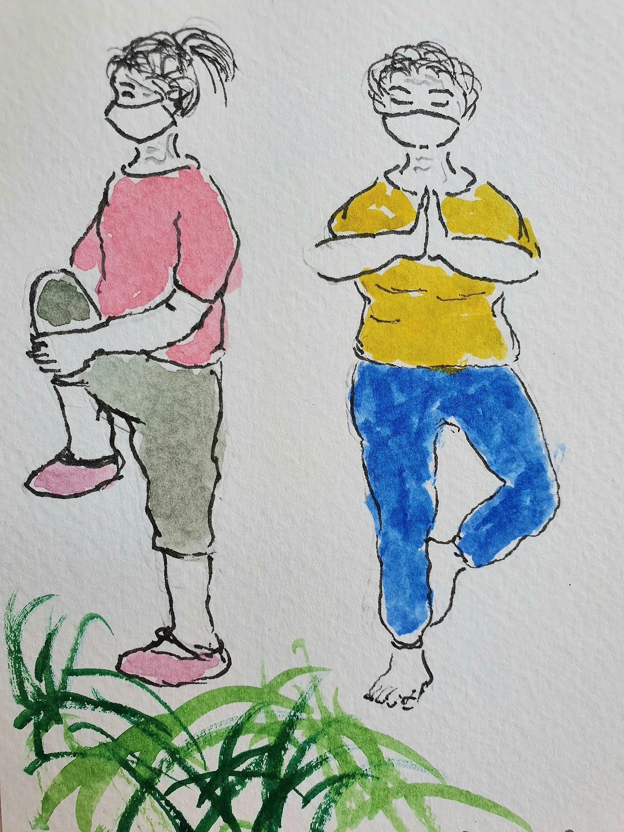 간단한 요가 동작에 몰입된 표정이 사뭇 진지하다. 스쿼트나 런지에 열심이거나 국민체조 동작을 반복하는 이들도 있다. 적당히 헐렁한 옷차림은 튀지 않고 수수하다. 호감이 간다.