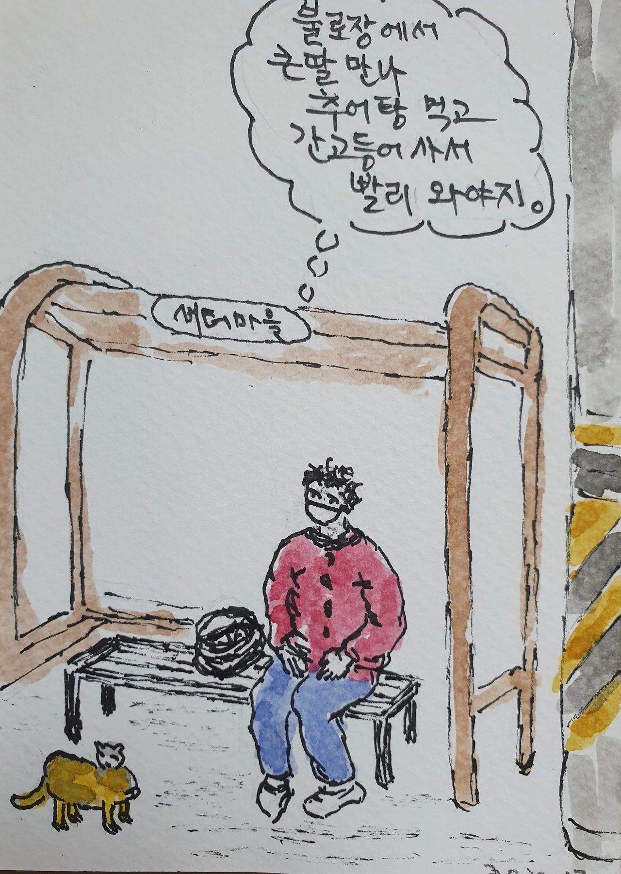 “어찌어찌 열흘이 지나니께 쬐끔 정신이 돌아 오드만.” 불로동 5일장에 혼자 버스 타고 갈 수 있겠다는 자신이 생겨 나온 참이란다. “청도에 사는 큰 딸이, 엄마 어떻게 됐는가 본다고 지금 온다는 기별이 왔어. 불로장에서 만나 추어탕 한 그릇 사먹으면 힘이 좀 날거라고 하드만.”