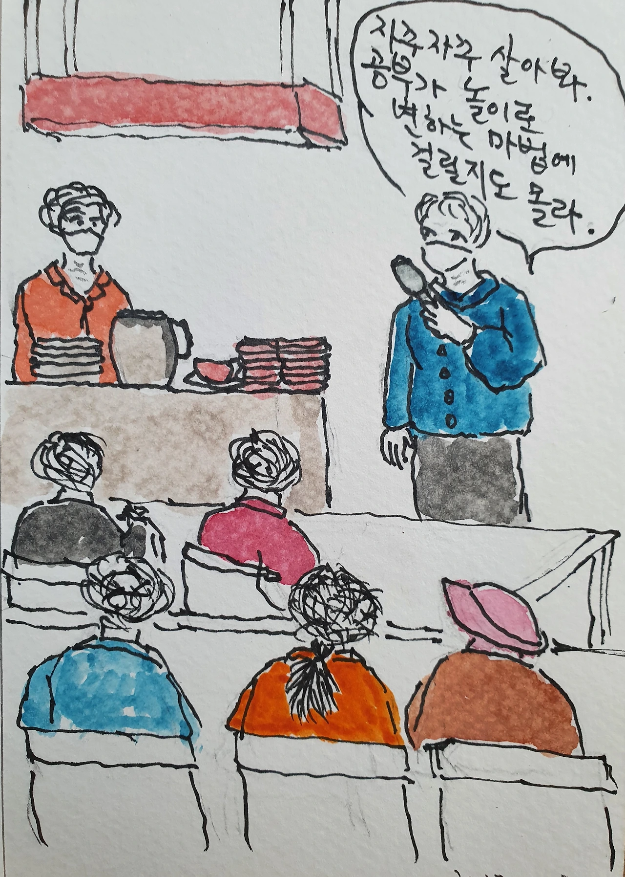 누군가는 크고 작은 병이나 가족관계 갈등을 끼고 산다. 누군가는 황혼육아와 가족 내 간병이란 책임의무로부터 자유롭지 못하다. 늙어가는 일밖에 남은 게 없는 건가. 각자 다른 양상으로 외롭다. 그래서 우린 모여서 함께 놀기로 결심했다. 놀되 배우면서 놀기를 더 좋아하는 성향을 공유한다는 걸 알게 된 덕분이다.