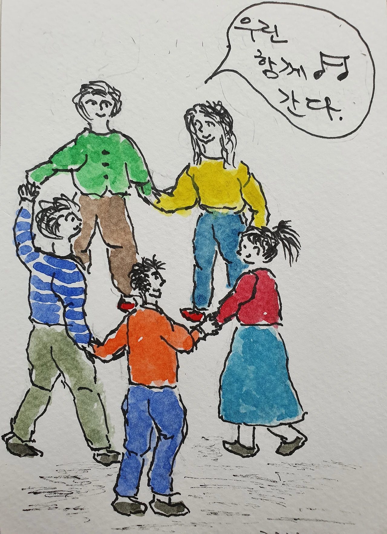 눈앞에 갑자기 거대한 써클 댄스 장면이 떠오른다. 개딸들의 강강술래다. 언제 어디든 탁 트인 광장이 좋겠다. 커다란 원을 그리면서 손에 손을 잡고 ‘강강술래’ 후렴구를 소리 높여 합창하며 힘차게 뛰는 K-딸들의 신바람 춤판! 지축을 흔들 초강력 에너지가 분출될 것 같다. 아직 서툴고 갈 길이 멀지만 그 붉은 마음들은 나라를 바꾸고 아시아를 바꾸고 지구의 미래를 만들어낼 나비의 몸짓이다.