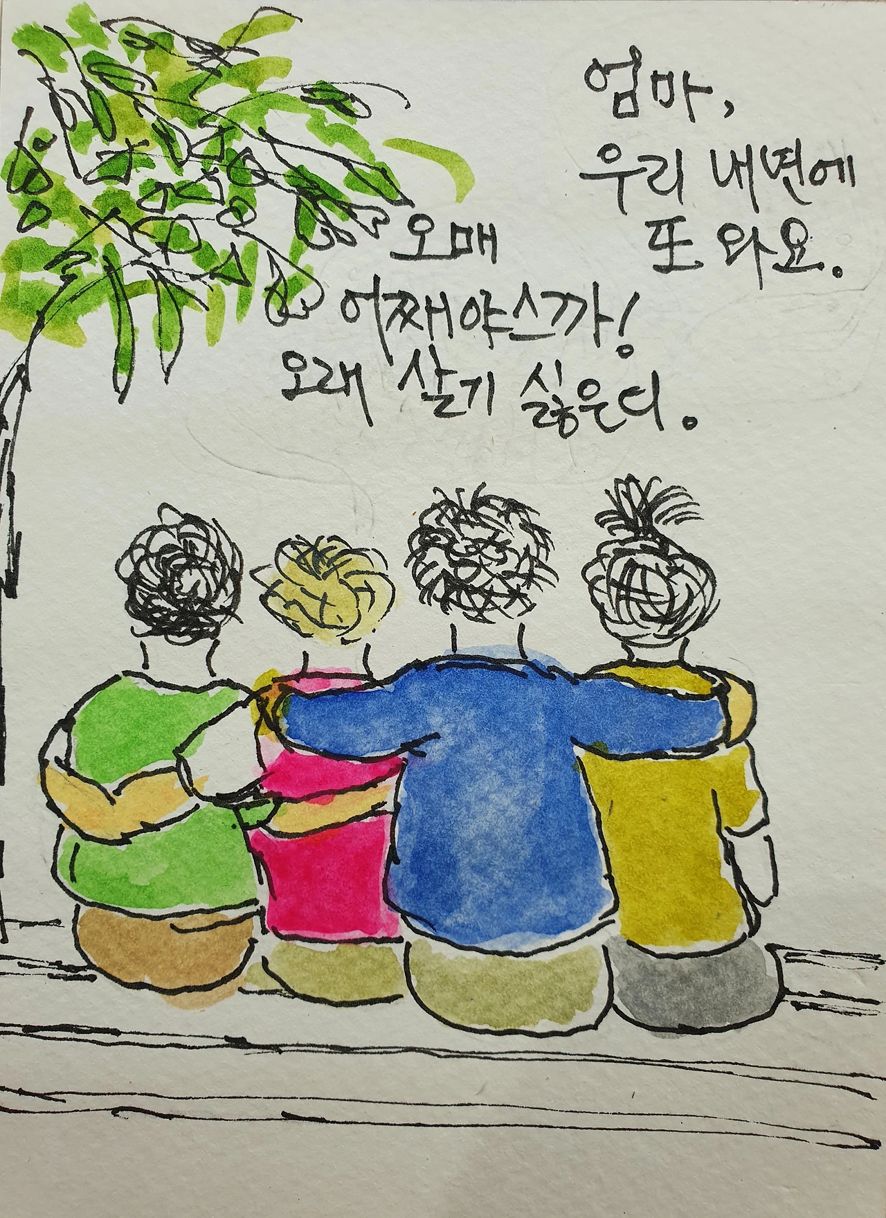 엄마가 우리를 향해 화사하게 웃으신다. “너희들이 모두 웃고 있어서 나는 행복하다. 고맙고 또 고맙네."