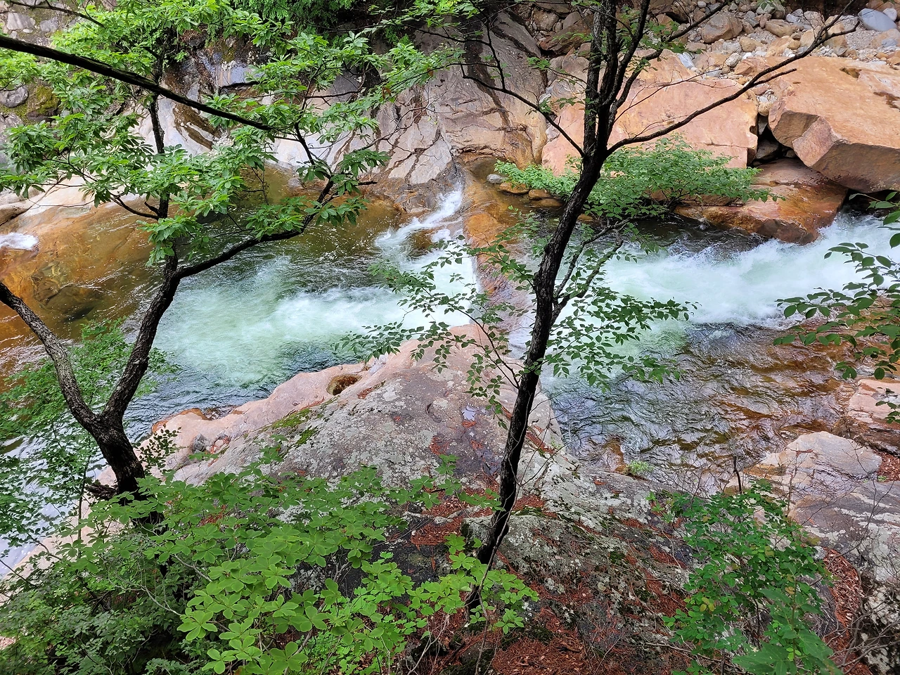 산골짜기 물은 시원하고 깨끗했다. 흐르는 물이 바위를 만나 부딪치며 내는 하얀 포말은 진주알이 흩어져 떨어지는 것 같이 보였다. 길옆 나뭇잎들은 푸른 싱그러움을 더해 주었다. 어쩌다 부는 바람은