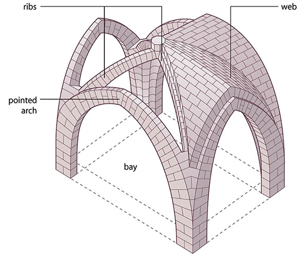 1) 플라잉 버트레스 : 아치 모양의 팔로 외벽의 압력을 지탱하는 형태