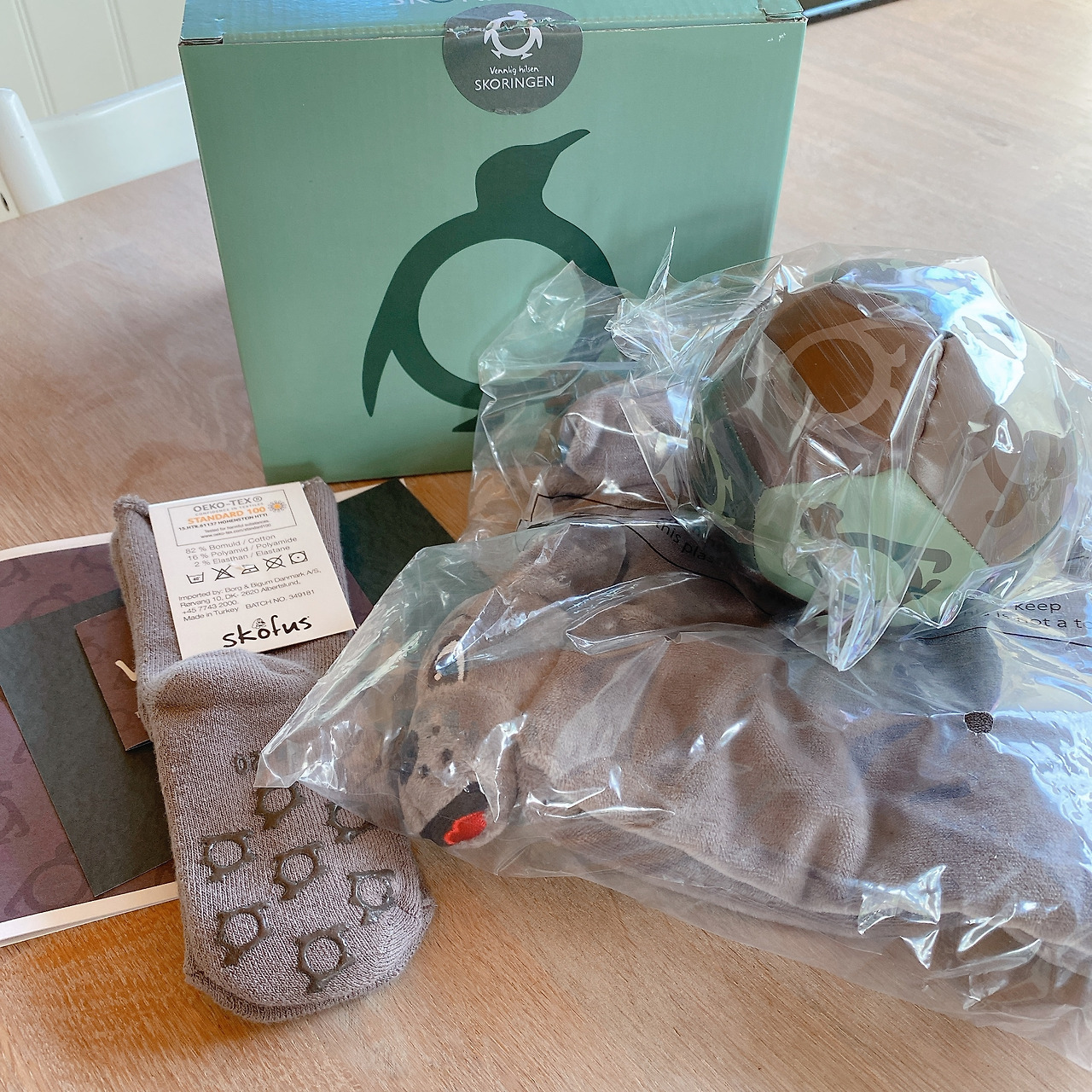 특이하게 신발가게에서 준 베이비 박스에는 아이들이 물고 빨 수 있는 천 장난감과 미끄럼 방지 양말과 장난감 등이 들어있었다.