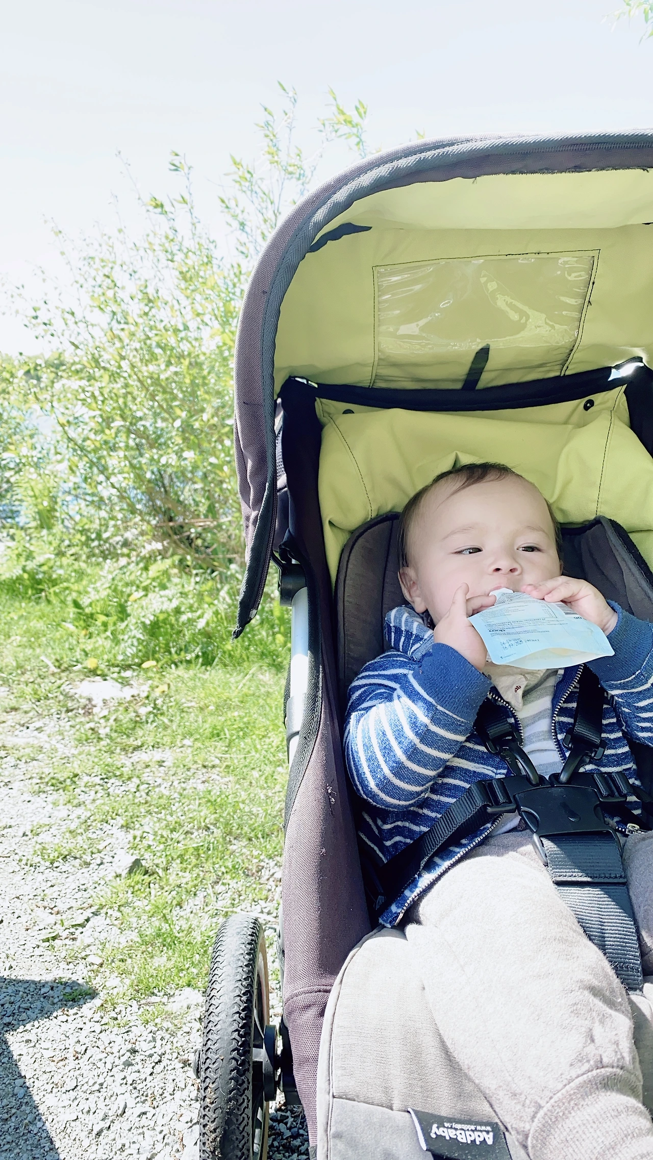 이렇게 간식도 유아차에서 먹을 정도로 아기는 유아차에서 내 집 같은 편안함을 느꼈나 보다.