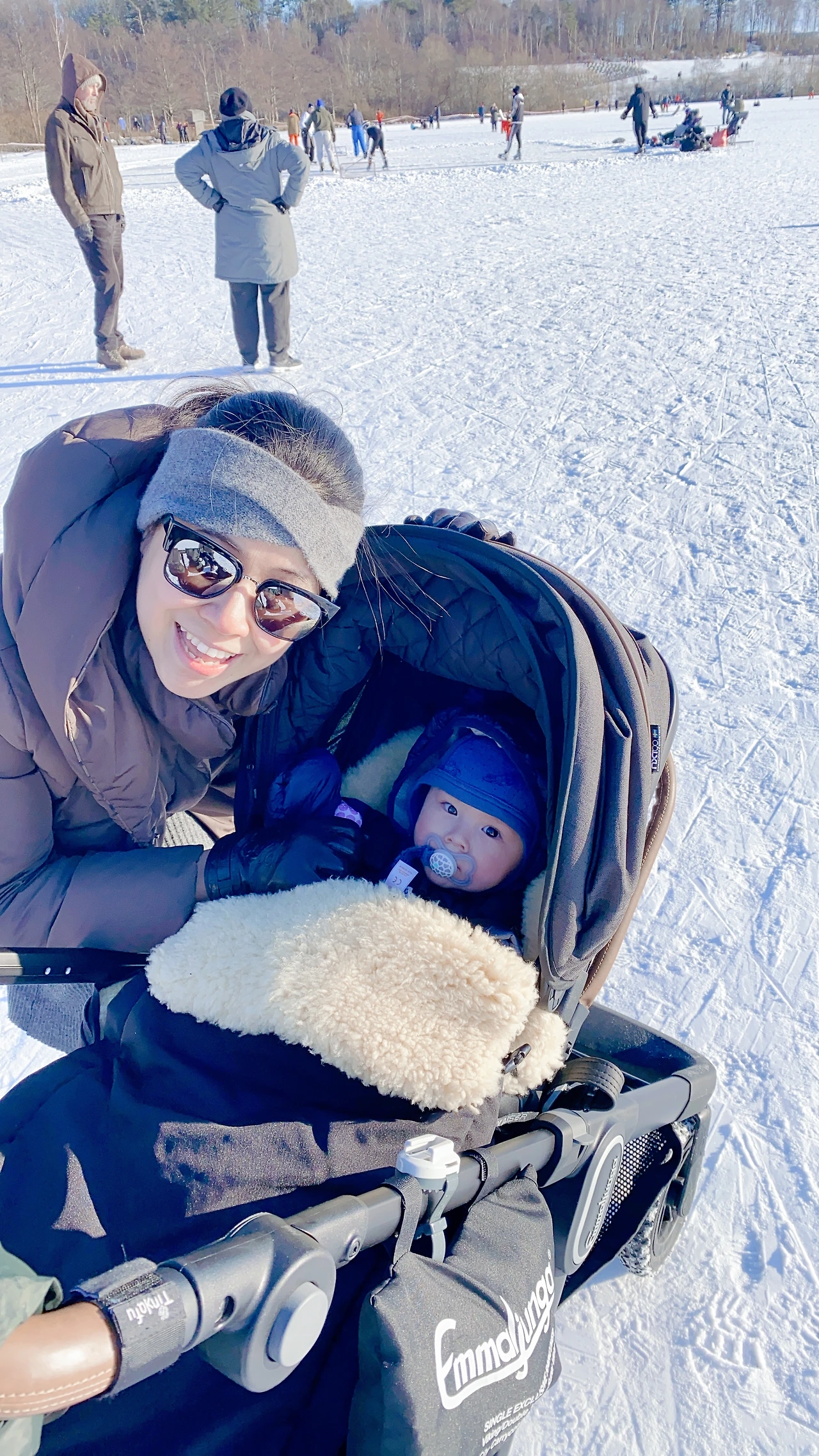 또 겨울에는 이렇게 그림처럼 꿀잠 자는 아들을 데리고 꽁꽁 언 호수를 걸어보는 신기한 경험도 했다.