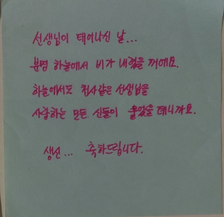 그리고 붙었던 메모는 조금 오싹하기까지 했다. 스토킹 당하는 느낌? 이 아이는 나를 지켜보고 있구나. 좋은 마음이든, 아니든... 누군지도 모르는 이런 메시지를 받는 기분이 묘했다. 분명 나에 대한 칭찬이고 학생으로서의 감사가 담긴 마음이며, 진심이 담긴 것 같긴 했다.