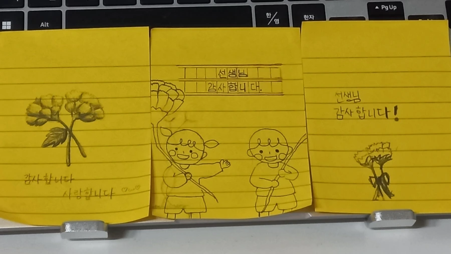 내년이면 선생님과 같은 학교에 있을 수 없다는 게 너무 슬프지만, 그래서 올 한 해를 더 열심히 노력하며 지내야겠다는 생각이 들어요. 저희반 선생님이 되어 주셔서, 우리학교에 와주셔서 감사합니다.