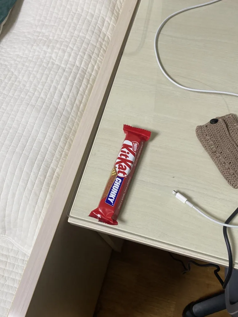 입사 둘째 날 외출 후에 기숙사에 돌아가 보니 아직도 대면하지 못한 룸메도 외출 중이었는데.. 자기 자리에 이런 게 올려져 있다고 사진을 찍어 보내주었다.