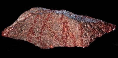 남아프리카 공화국 동굴에서 발견된 7만 3000년 전 돌조각. 표면에 붉은 황토로 그린 그림이 남아 있다. 현재까지 발견된, 현생인류가 그린 최초의 그림이다. - 사진 제공 네이처