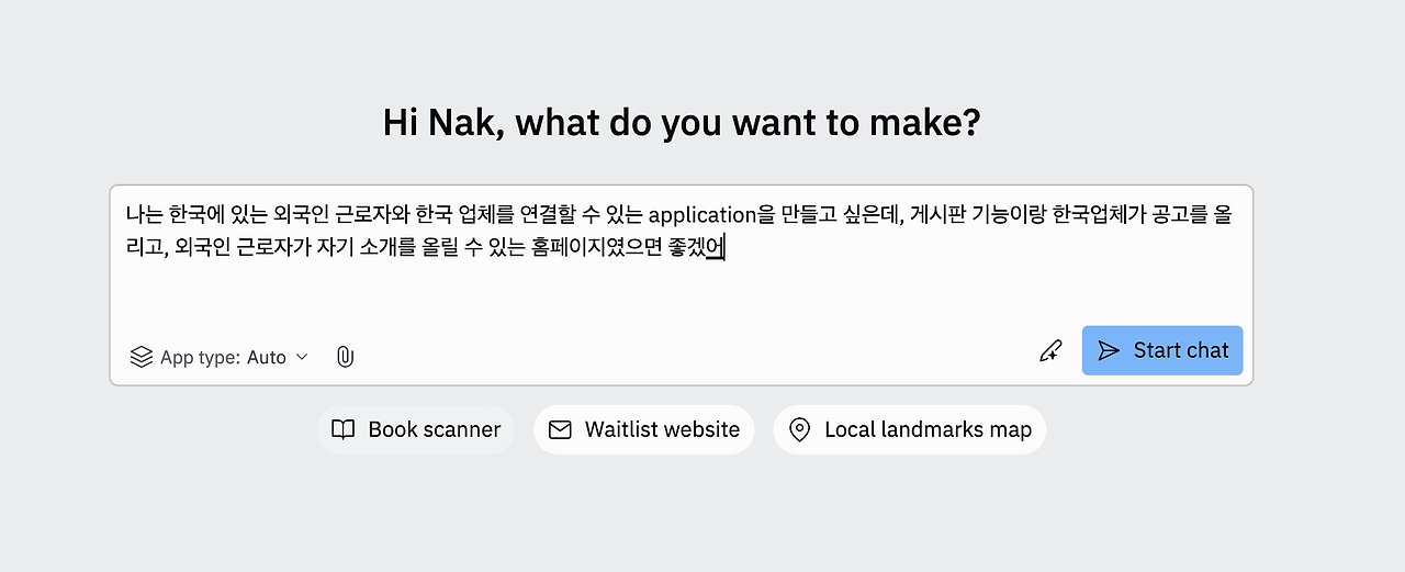 아래와 같이 필요한 기능을 적은 후 "Start Chat"을 누르면 끝난다.