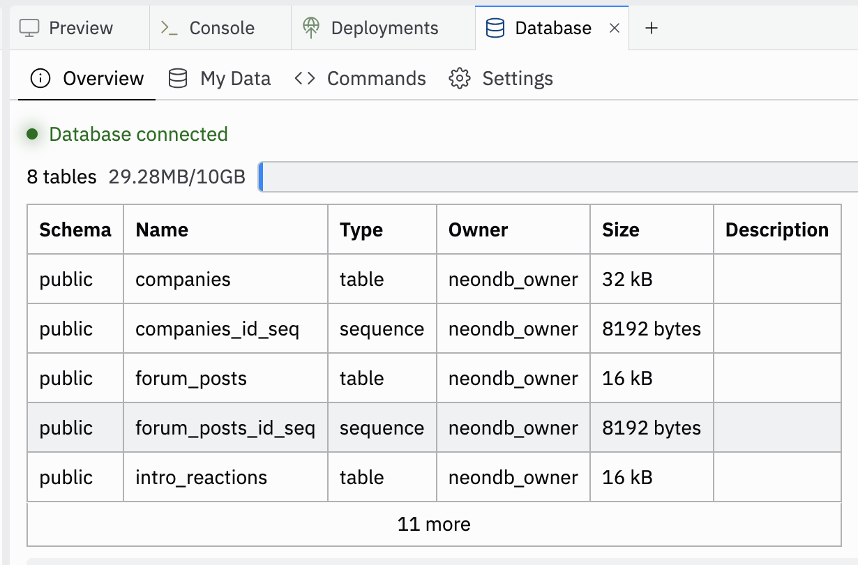 Replit 내부 AWS 기반의 DB를 사용해, 직접 서버 관리를 하지 않아도 무방하다.