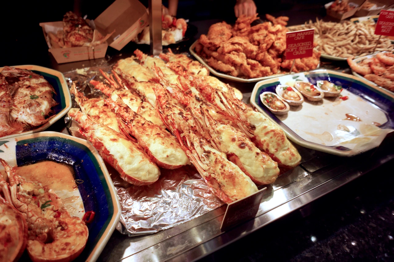 우리가 즐겨먹는 오징어 튀김, 흔히 접하던 게, 새우와는 조금 다르게 생긴 스캠피, 전복구이, 각종 생선구이 등 조리 식품부터 신선함이 가득한 생물 해산물 등이 방문하는 이의 시선을 사로잡는다. 로브스터 종류도 비교적(?) 저렴한 가격에 구입할 수 있으며, 갑각류부터 다양한 조개, 어류 등을 고를 수 있다. 그렇다고 한국에 비해 무척 저렴한 가격은 아니다. 인건비가 비싼 나라이다보니. 저렴하게 해산물을 사고 싶은 경우에는 현지의 대형 체인 마트인 울워스/Woolworths나 콜스/Coles 등의 해산물 코너에서 구입하는 것이 좋다. 또한, 할인이 들어가는 제품들도 어렵지 않게 찾을 수 있다.