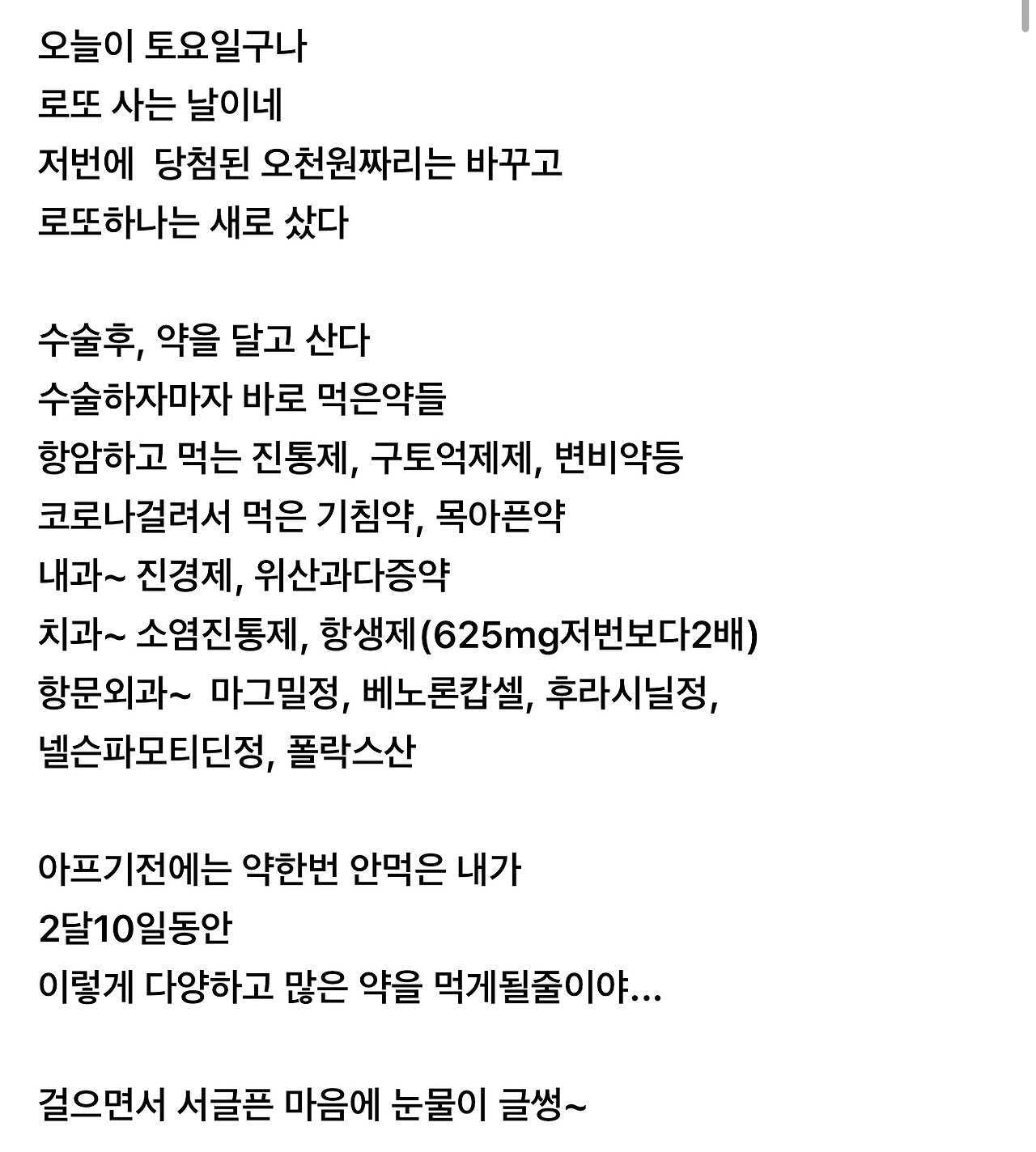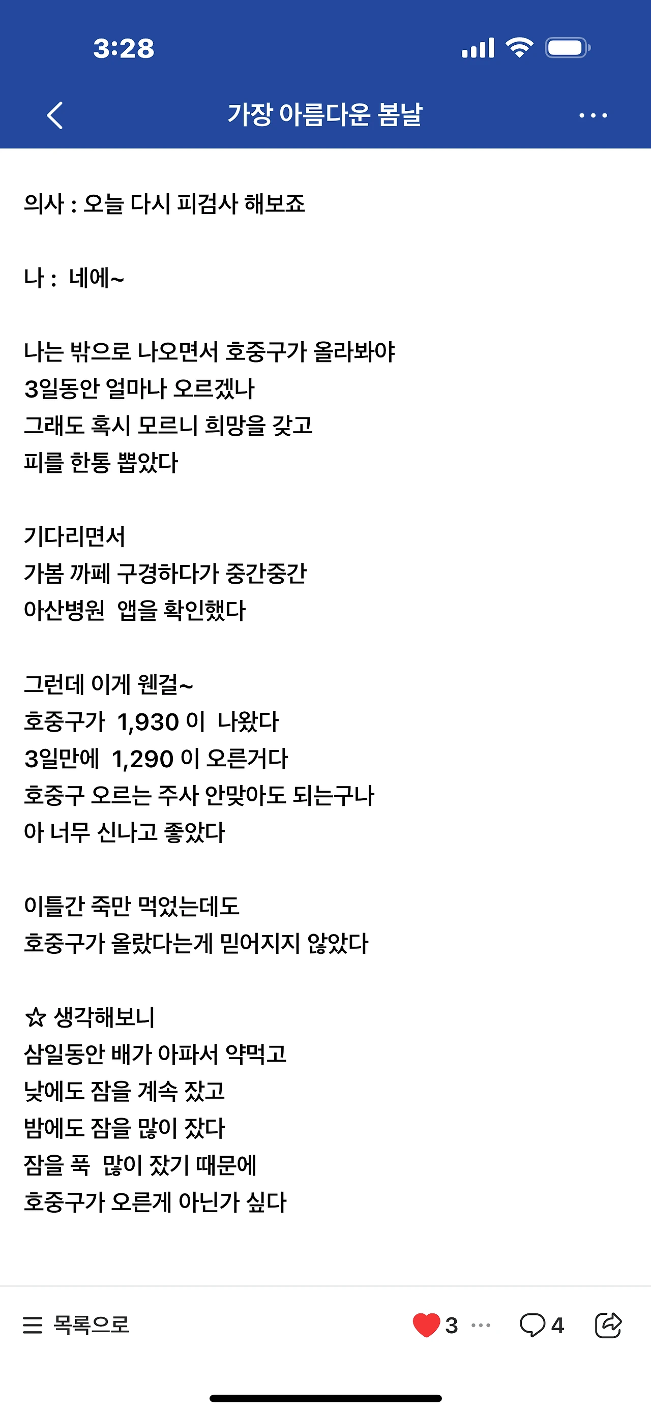 피검사 결과가 잘 나오는 날에는 엄마의 글에 신바람이 묻어나왔다.