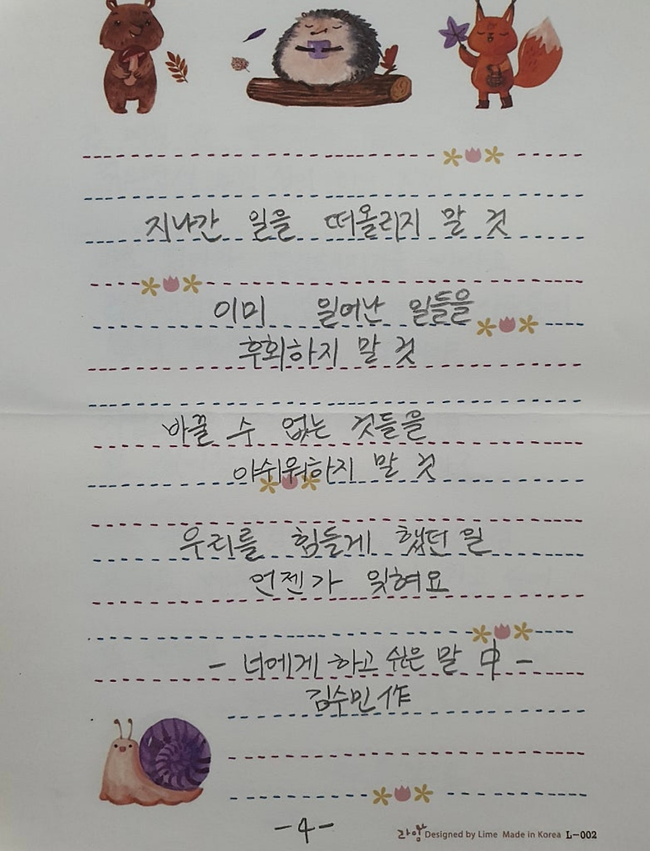 시간이 지날수록, 엄마의 글에는 하루하루를 살아감이 얼마나 소중한지에 대한 깨달음과, 함께 고생하는 가족들에 대한 고마움이 담겨져갔다.