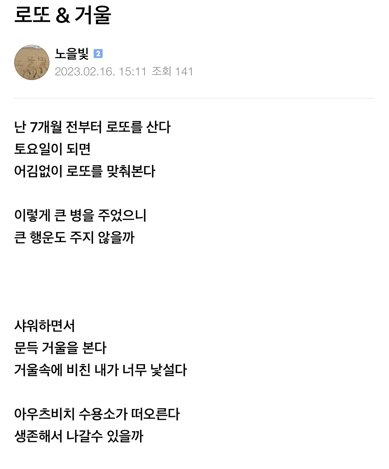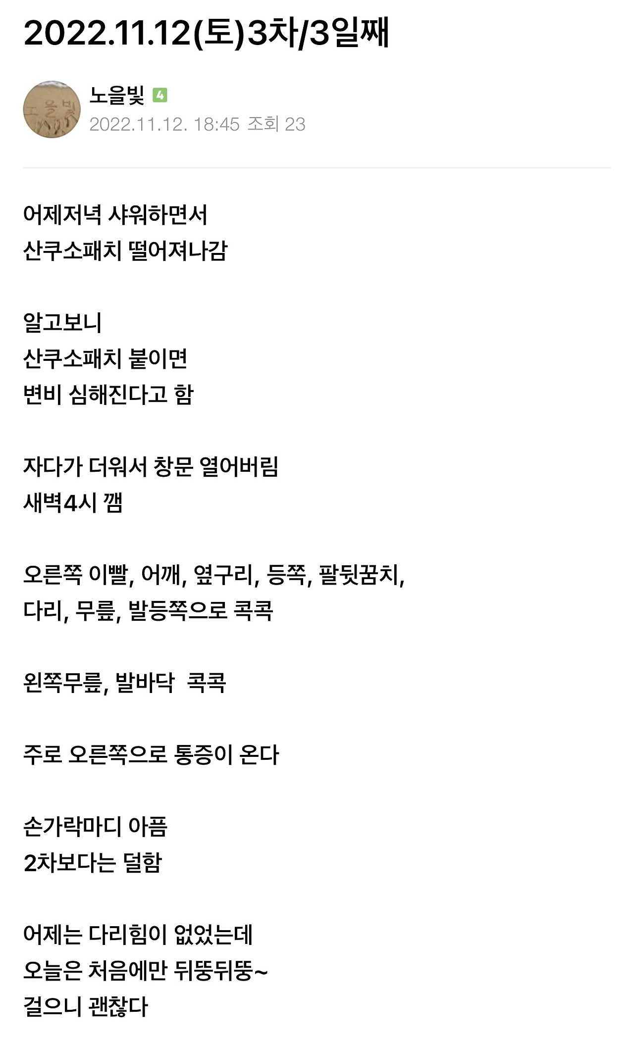 단순한 게시글이나 일기라기보단 일종의 '생존일지'에 가까웠다.