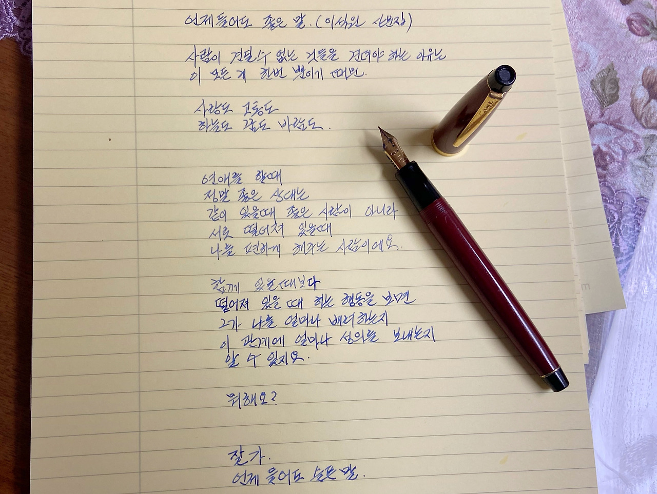 휴대폰이나 컴퓨터로 글을 쓰는 세상이라 만년필의 용도가 그리 크지 않겠지만 가끔씩 사각사각 흰 여백에 만년필 촉에서 나오는 파란 잉크 글을 채워갈 때의 느낌은 감히 디지털과는 비교가 되지 않을 것 같아 기대 가득입니다. 아직 만년필은 현역이며 현재와 과거 그리고 미래를 생각게 해 주는 감성입니다.
