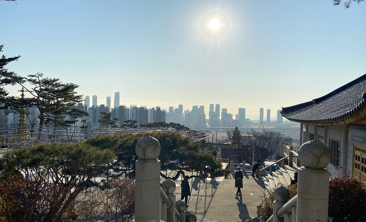 동장군 기세의 소문에 두꺼운 옷 겹겹이 차려입고, 가까운 절에 어슬렁였습니다. 소문난 잔치에 먹을 것 없듯, 동장군의 소문은 따스한 햇살이 잠깐 잠재워 주었습니다.