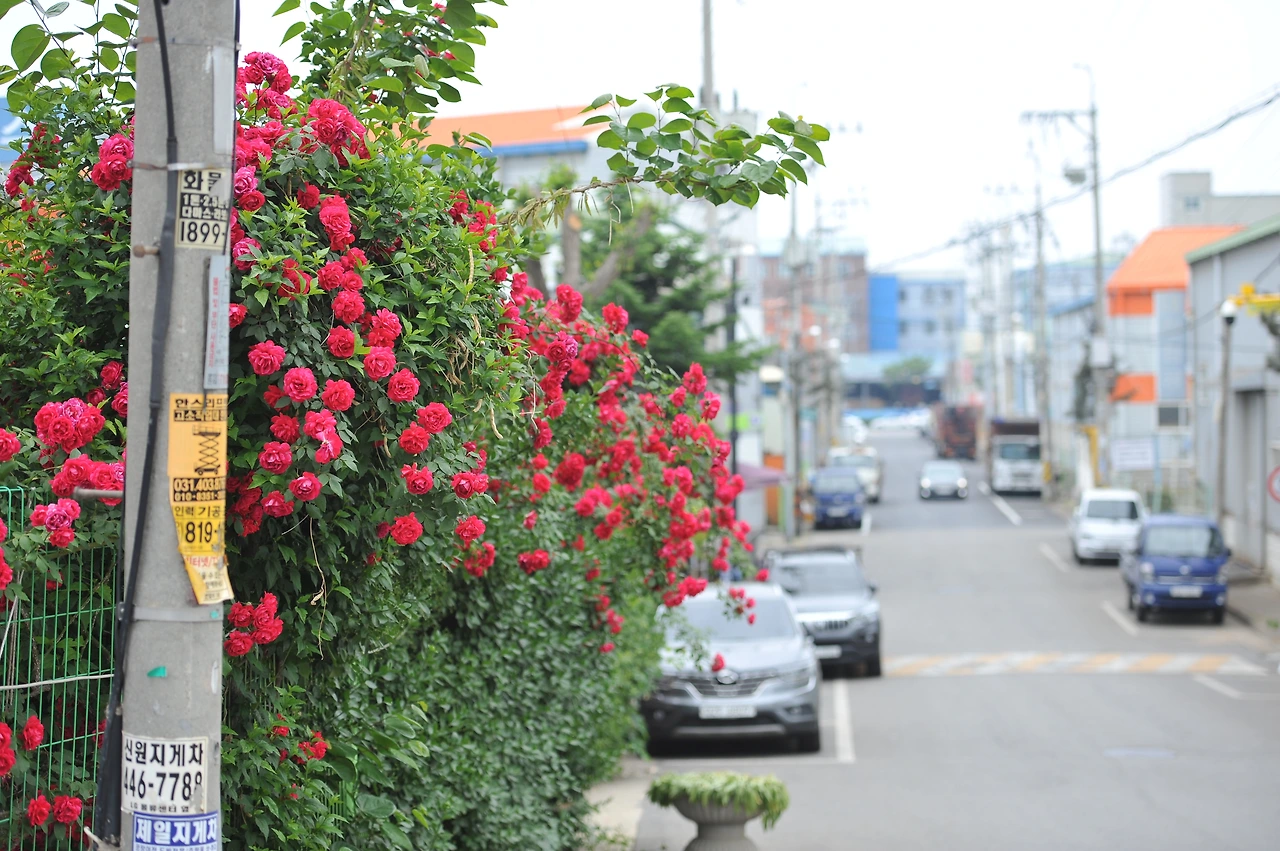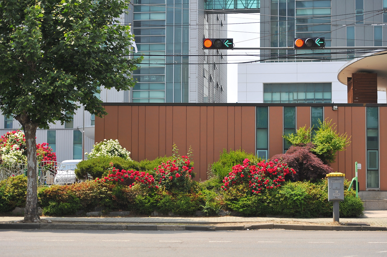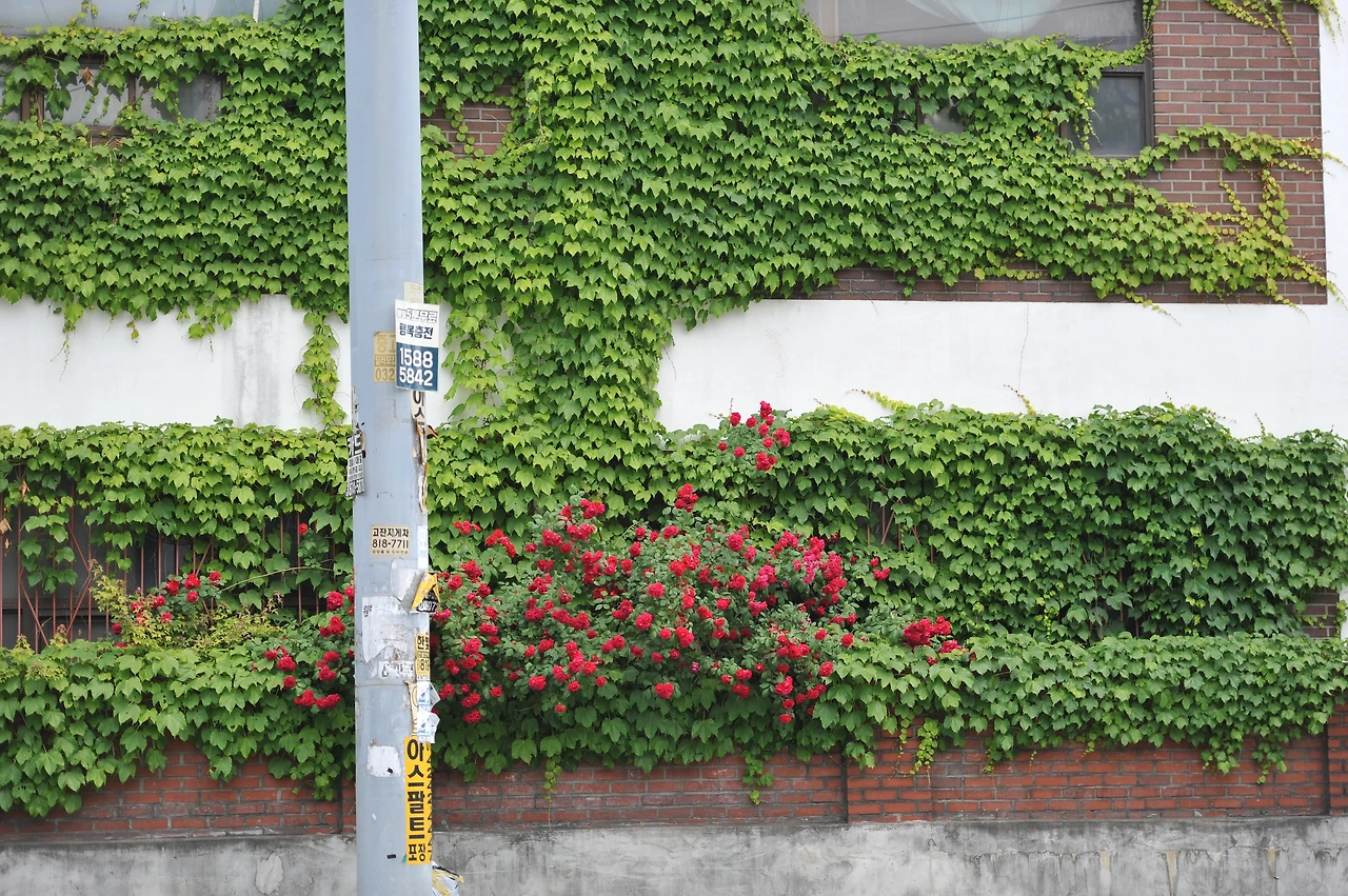 해마다 남동공단의 오월은 간간히 붉습니다. 공단이라면 삭막함도 있을 수도 있고, 꽤 어두운 색으로 느낄 수도 있고, 전체적으로 무거운 느낌일 수도 있지만, 이 붉은색의 장미는 조금 부정적일 수 있는 공단을 밝게 만드는 긍정적인 힘을 줍니다.