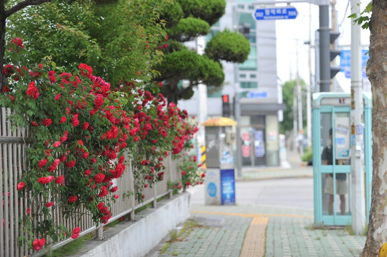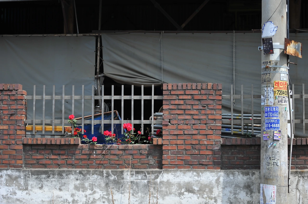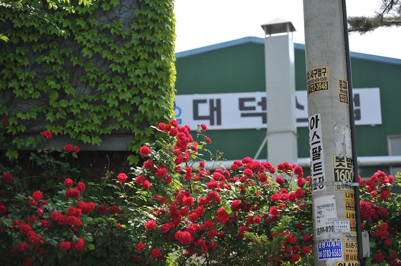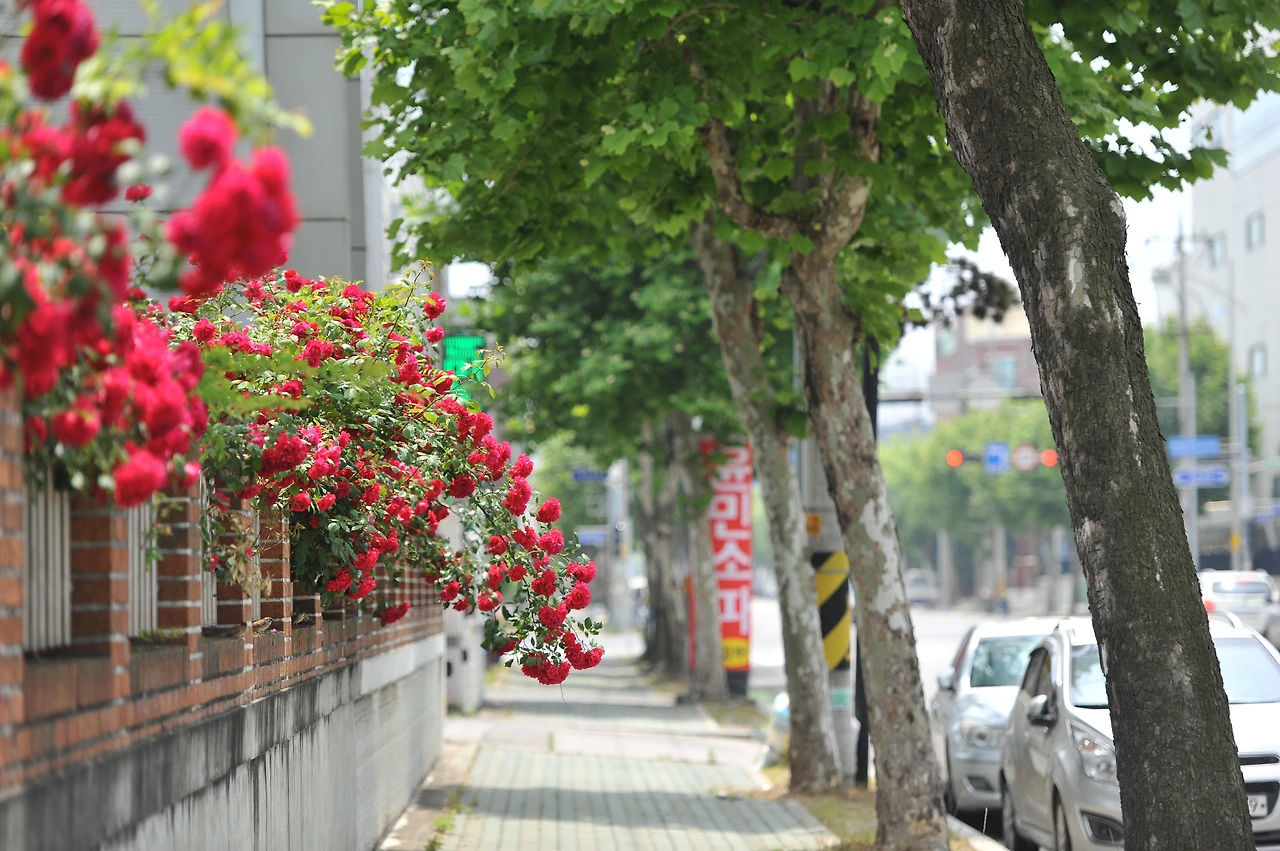 해마다 남동공단의 오월은 간간히 붉습니다. 공단이라면 삭막함도 있을 수도 있고, 꽤 어두운 색으로 느낄 수도 있고, 전체적으로 무거운 느낌일 수도 있지만, 이 붉은색의 장미는 조금 부정적일 수 있는 공단을 밝게 만드는 긍정적인 힘을 줍니다.
