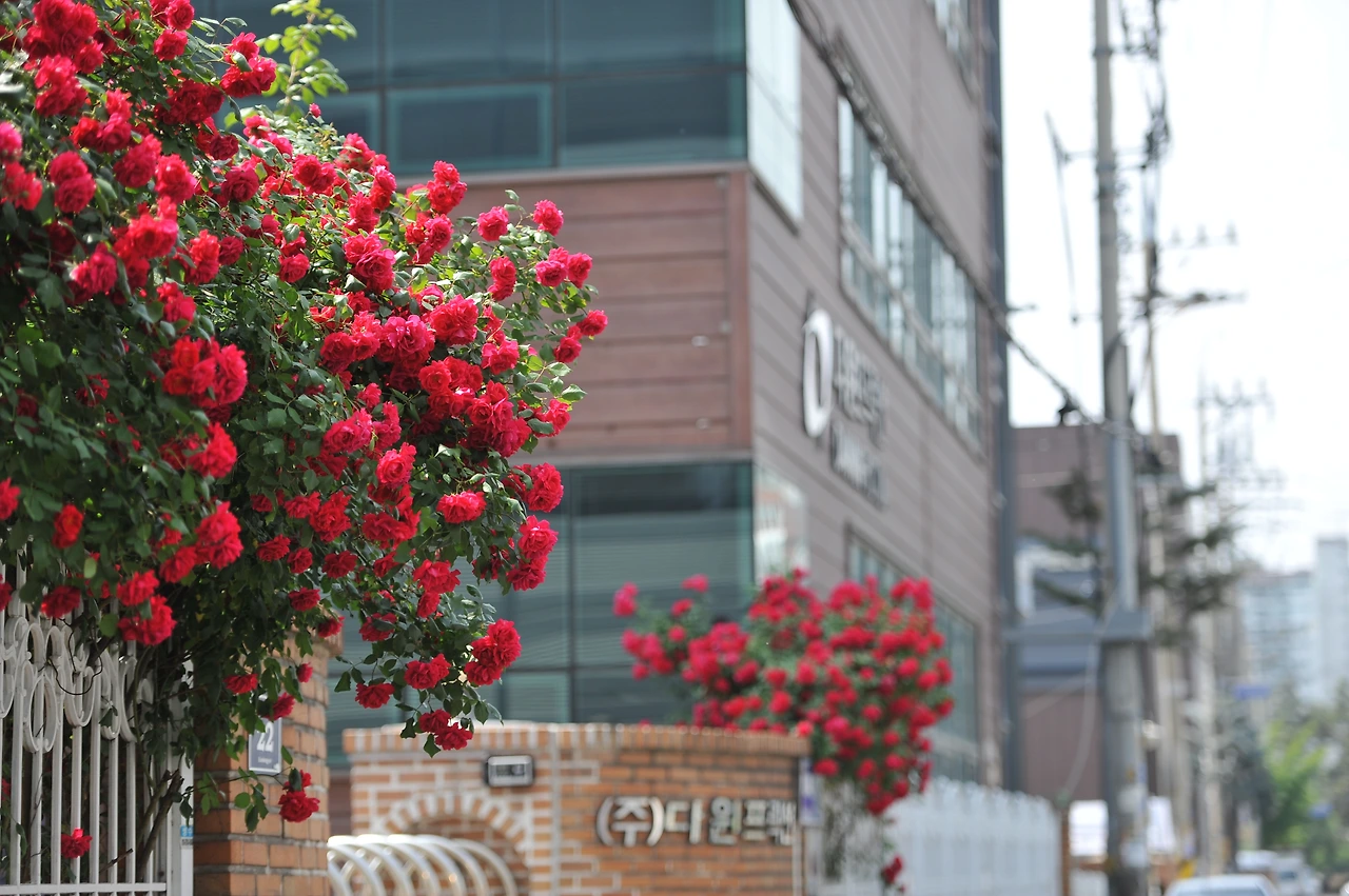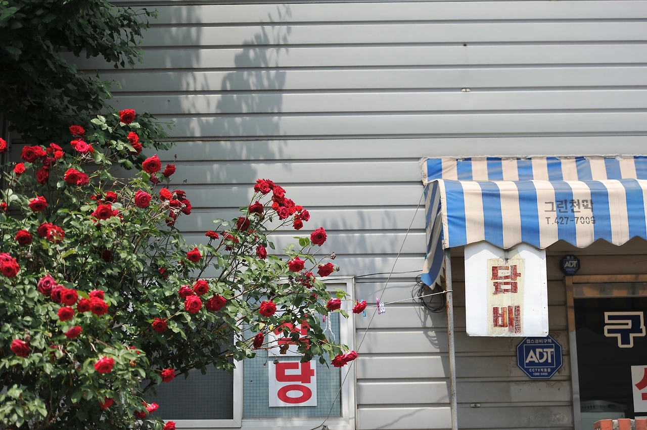 자투리 담장 옆을 장미줄기에게 내어준 사장님들이 마음이 고스란히 전해져 옵니다. 계절의 무성함처럼, 붉은 정열 처럼, 사장님들의 사업이 번창하여 월급도 많이 주면 좋겠습니다. 오월의 장미는 오늘도 아름답고 가치있게 붉었습니다.