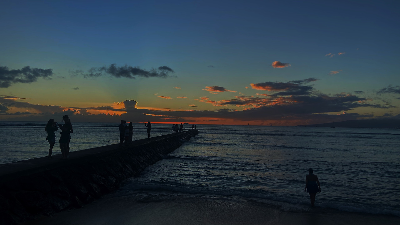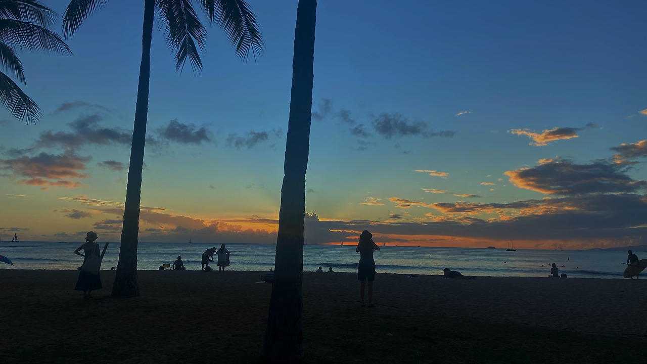 하와이 하면 떠오르는 단어가 사탕수수 그리고 와이키키 해변이 아니겠습니까. 인터넷상에 돌아다니는 수많은 달력 사진들, 해변, 노을 지는 저녁, 야자수와 그 아래 살짝 껴안은 남녀의 뒷모습 실루엣에 파라다이스가 있다면 여기다는 것을 말하고 있죠.