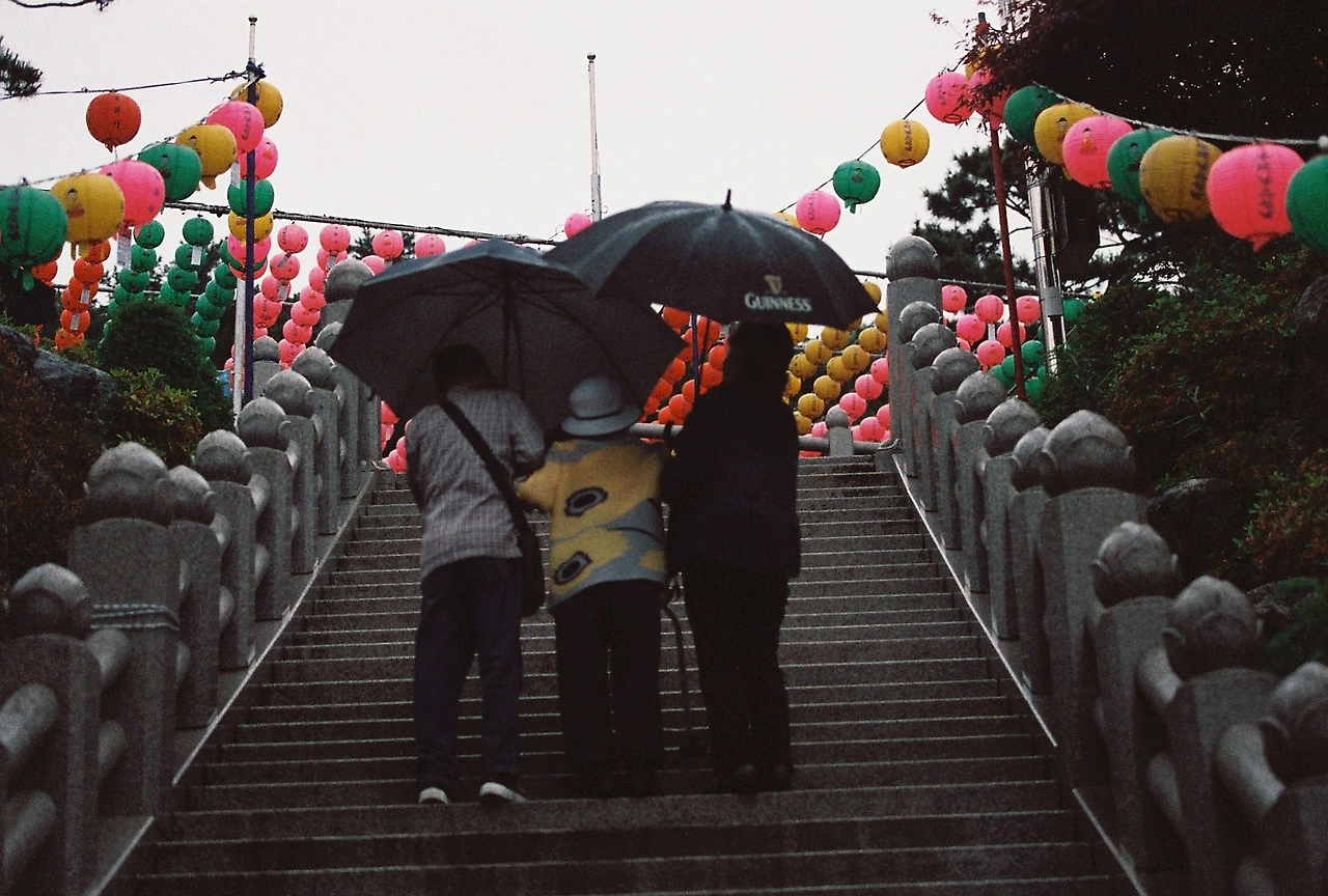 비 오는 날, 세분이 우산을 들고 계단을 오른다. 한사코 빨리 올라 부처님을 뵈려는 엄마(추정)의 마음을 두 자제분이 천천히 올라가시라 나무란다. 부모와 자식의 마음을 함께 싸우는 듯 마음을 나누는 모습에 감동한다. 가족이란 함께 하고 함께 도우고 끝도 함께한다는 모습을 여기서는 자주 볼 수 있다. 좋다. 감동이다.