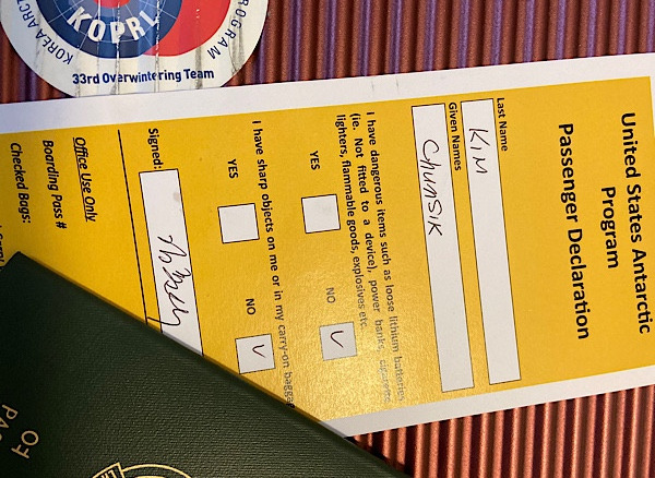 남극을 가고자 하는 사람은 각각 국가가 다르지만 목적은 유사하게 과학자를 비롯하여 기지를 운영하는 사람들과 기술자 그리고 연구를 돕는 조력자 들로 다양하게 분포되어 있습니다. 이번 비행기를 같이 탈 사람들은 총 36명, 대한민국 사람 6명 외에 이태리, 프랑스 분들이고, 프랑스에서는 장관 두 분과 방송국에서 취재 촬영차 오신 분들이 있어 나름 그 들에겐 수속장이 분주하게 보였습니다.